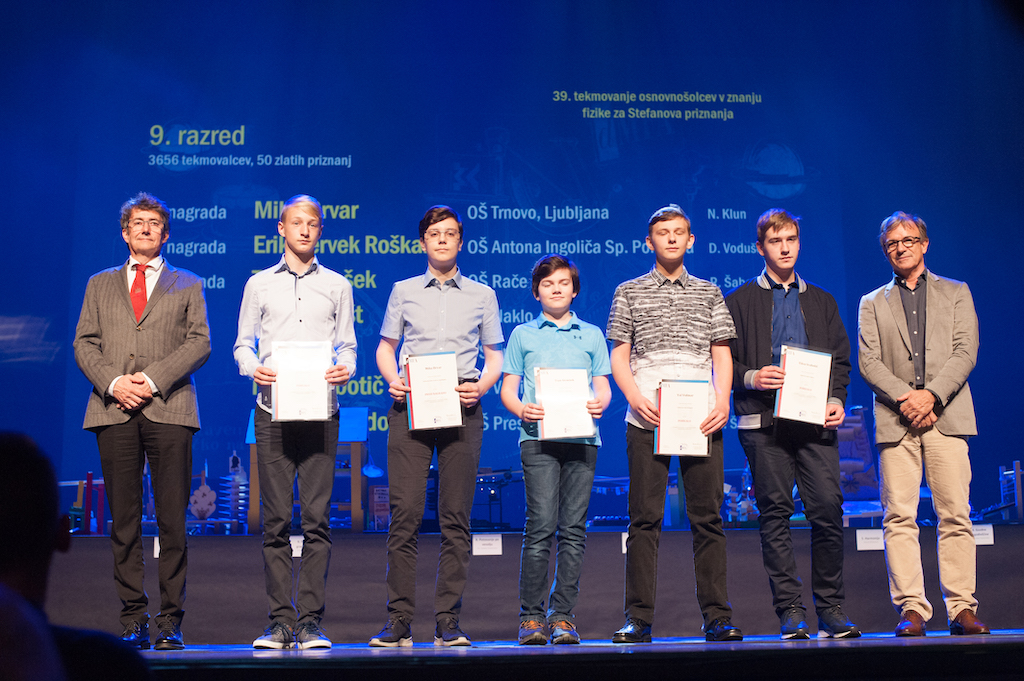 V nedeljo, 19. maja 2019, je v Cankarjeve domu potekala slavnostna prireditev Bistroumi 2019, na kateri smo nagrajencem vseh naših tekmovanj podelili nagrade za osvojena najvišja mesta na teh tekmovanjih. Med njimi tudi osmo- in devetošolcem, ki so zmagovalci letošnjega državnega tekmovanja v znanju fizike. Čestitamo še enkrat!