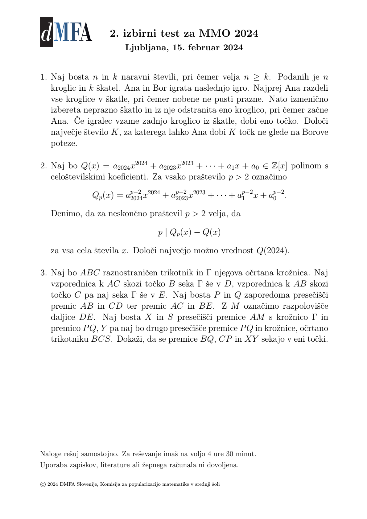 Končen izbor ekip bo izveden na osnovi treh izbirnih testov in rezultatov državnega tekmovanja iz matematike v mesecu aprilu, ekipe pa bomo predstavili na prireditvi Bistroumi 2024 v nedeljo, 2. junija 2024.