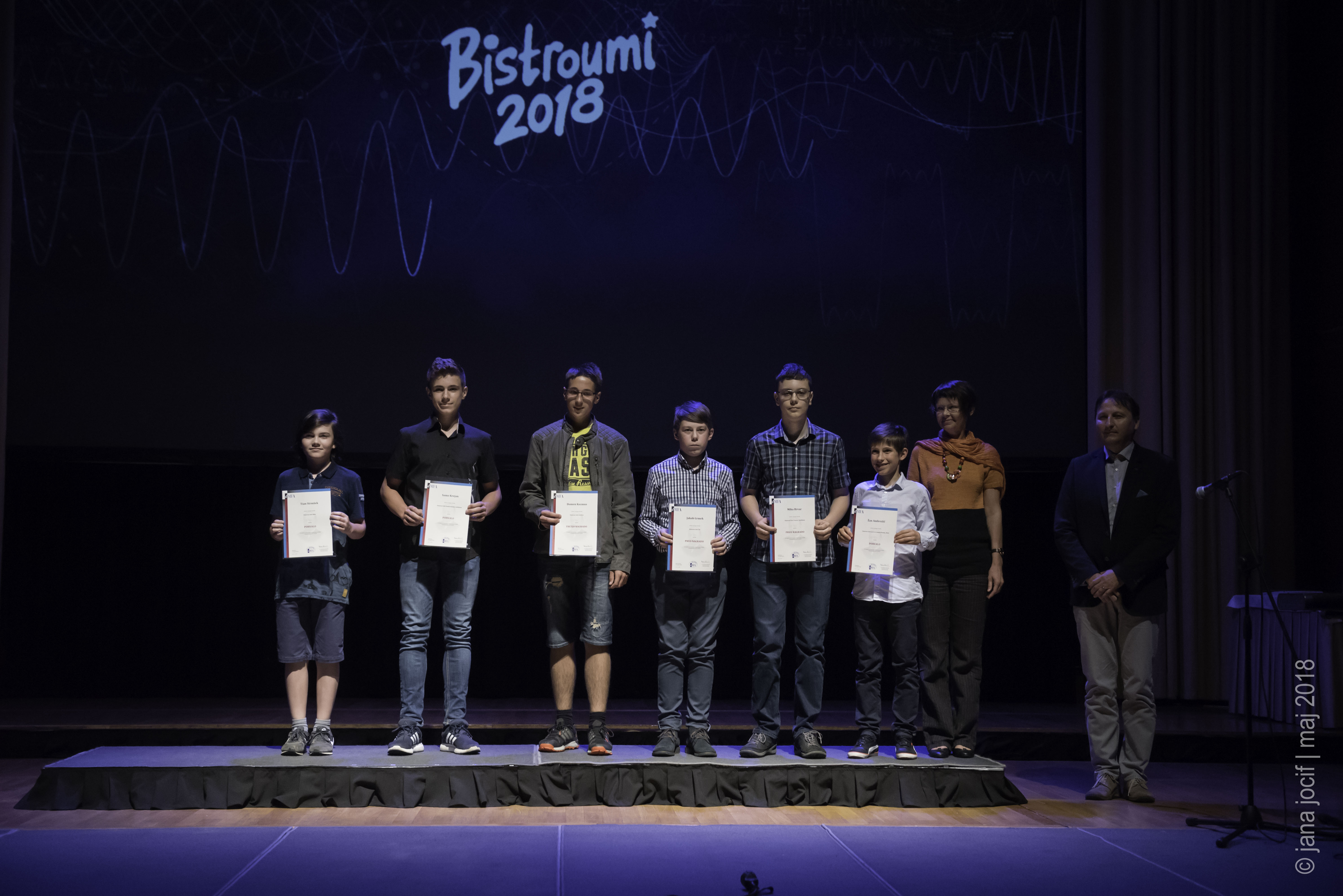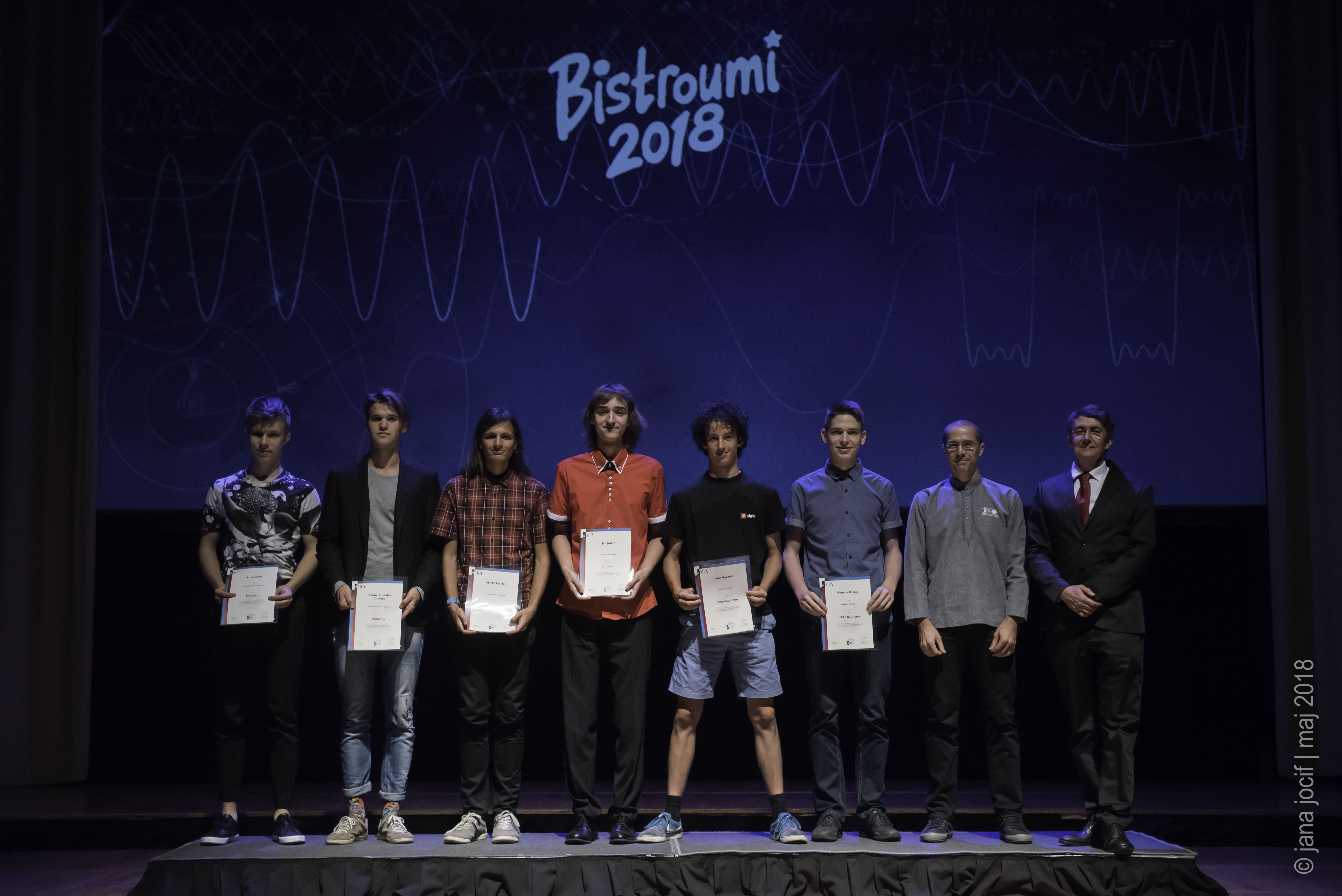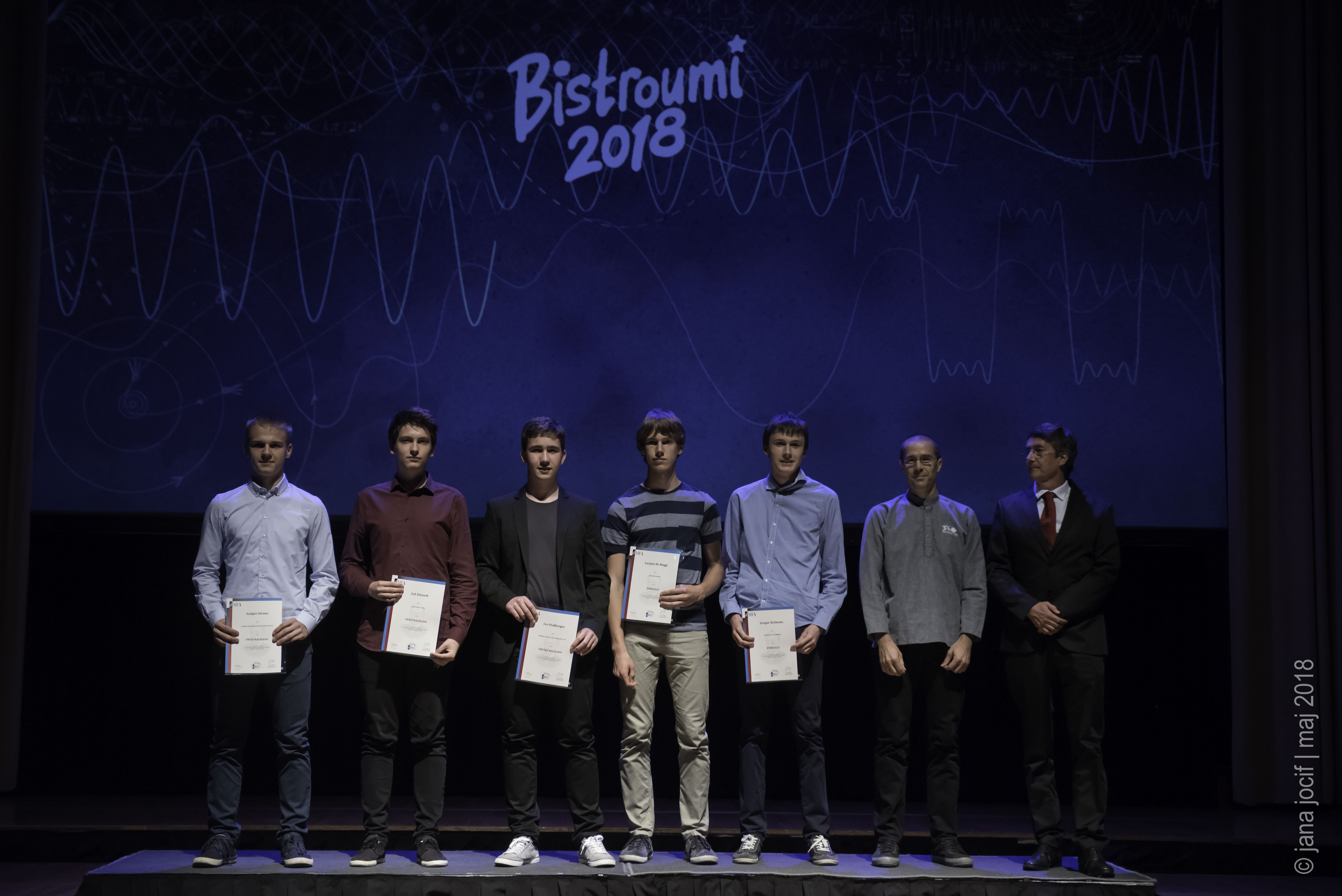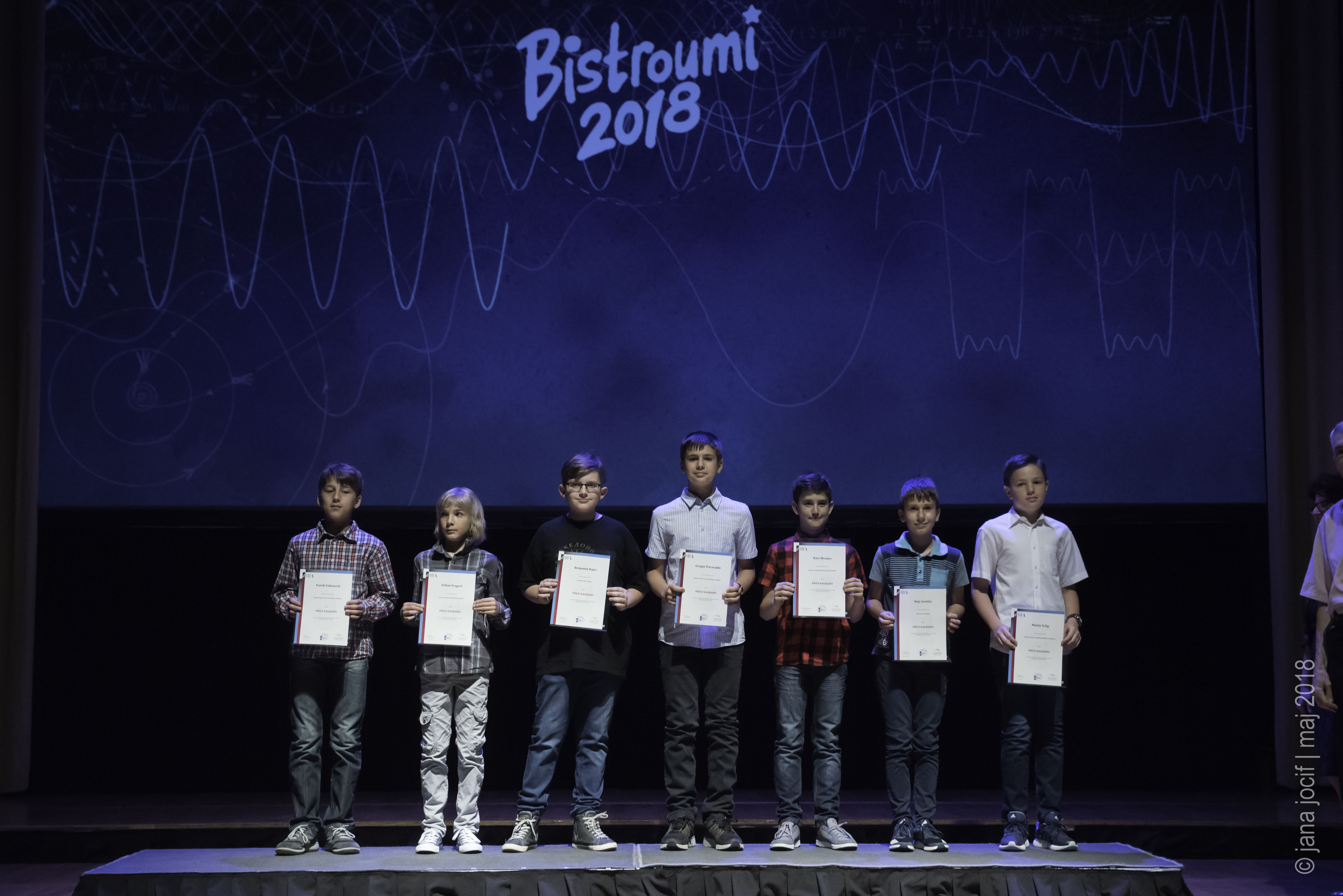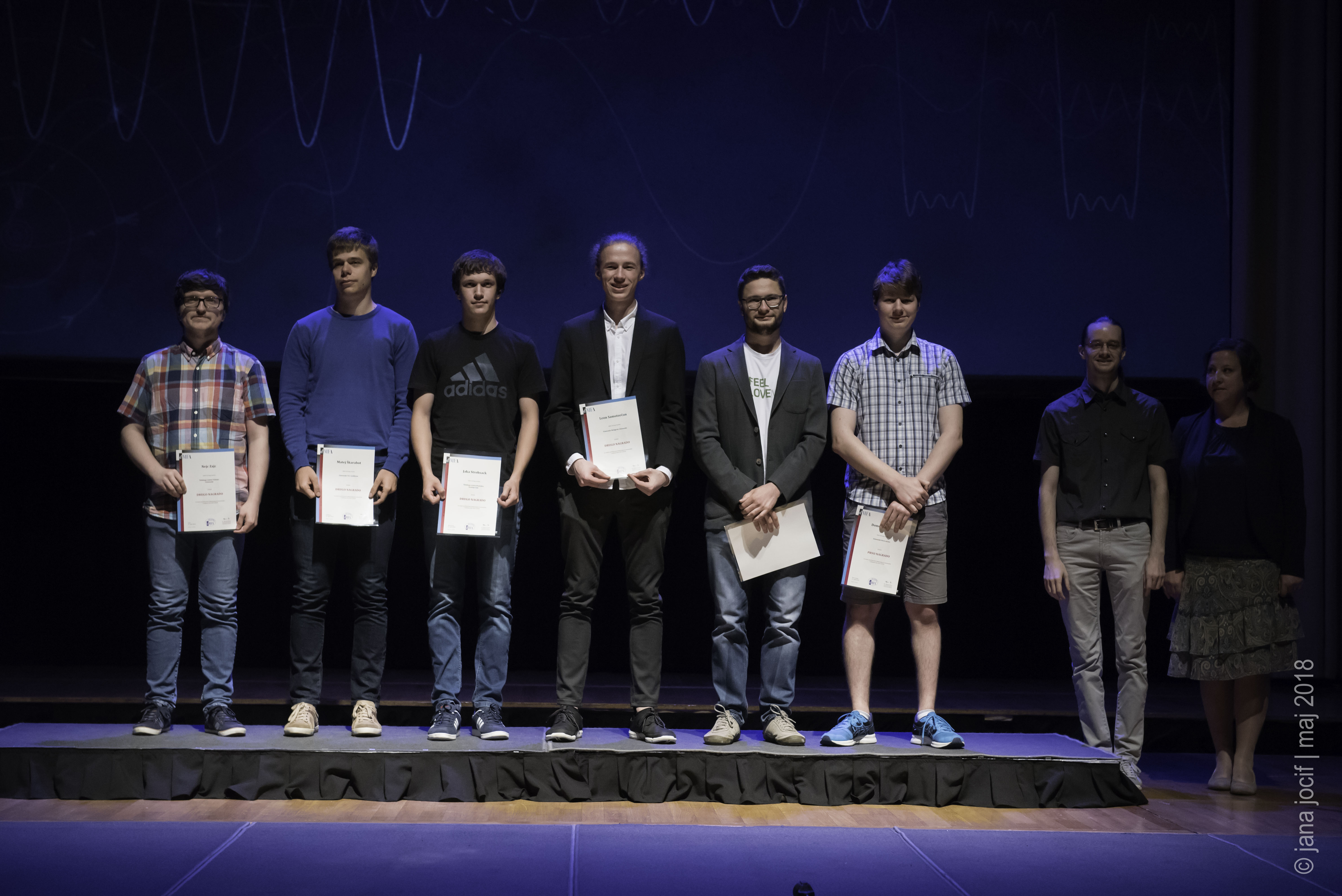 DMFA Slovenije dovoljuje shranitev slik v elektronski obliki in uporabo v individualne namene nagrajenih tekmovalcev. Uporaba posameznih slik na spletnih straneh šol ali v šolskih publikacijah je dovoljena, navesti je potrebno vir slik s povezavo na spletno stran DMFA Slovenije: <a href="http://www.dmfa.si/" title="DMFA Slovenije">www.dmfa.si</a>. Avtor slik: Jana Jocif.
