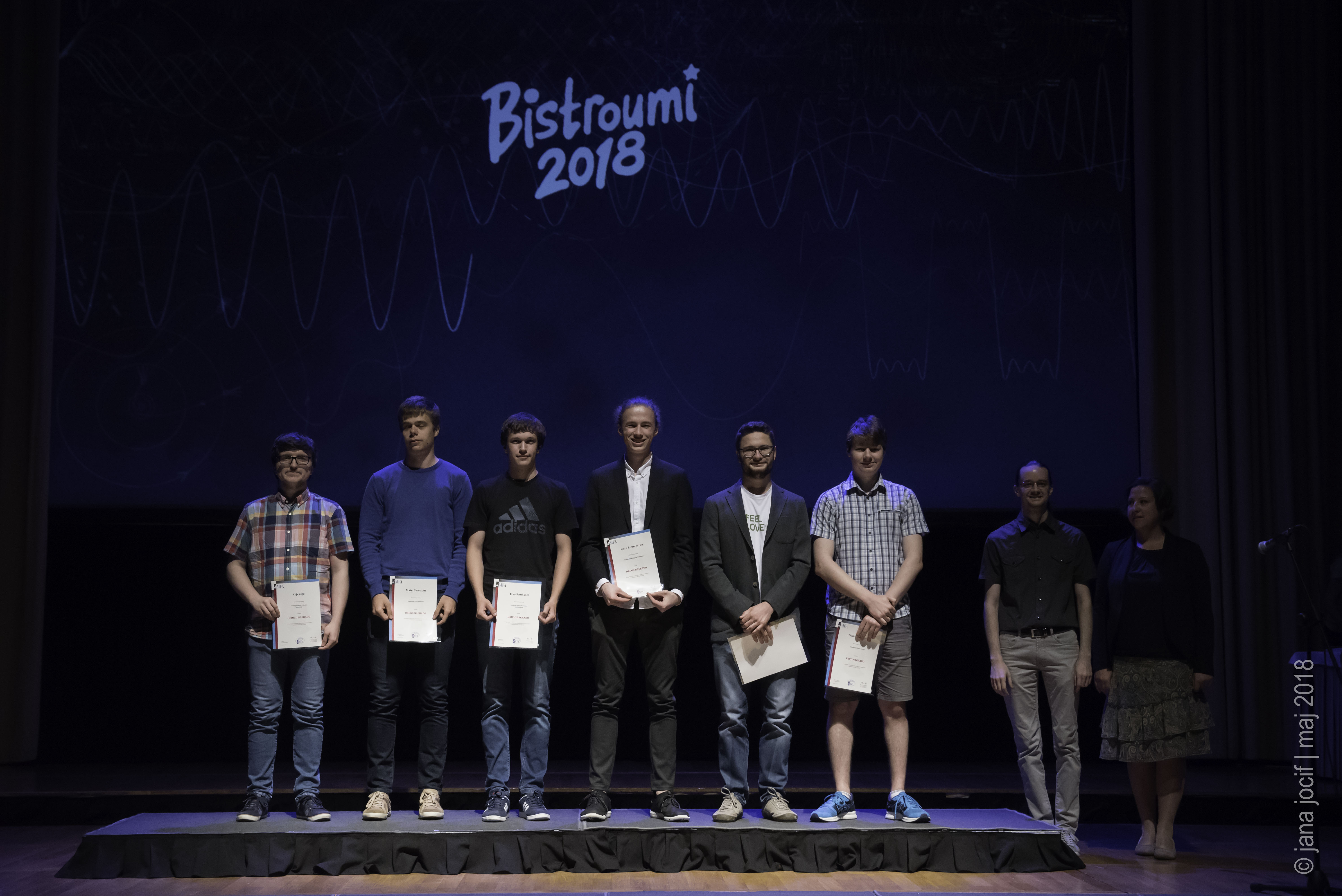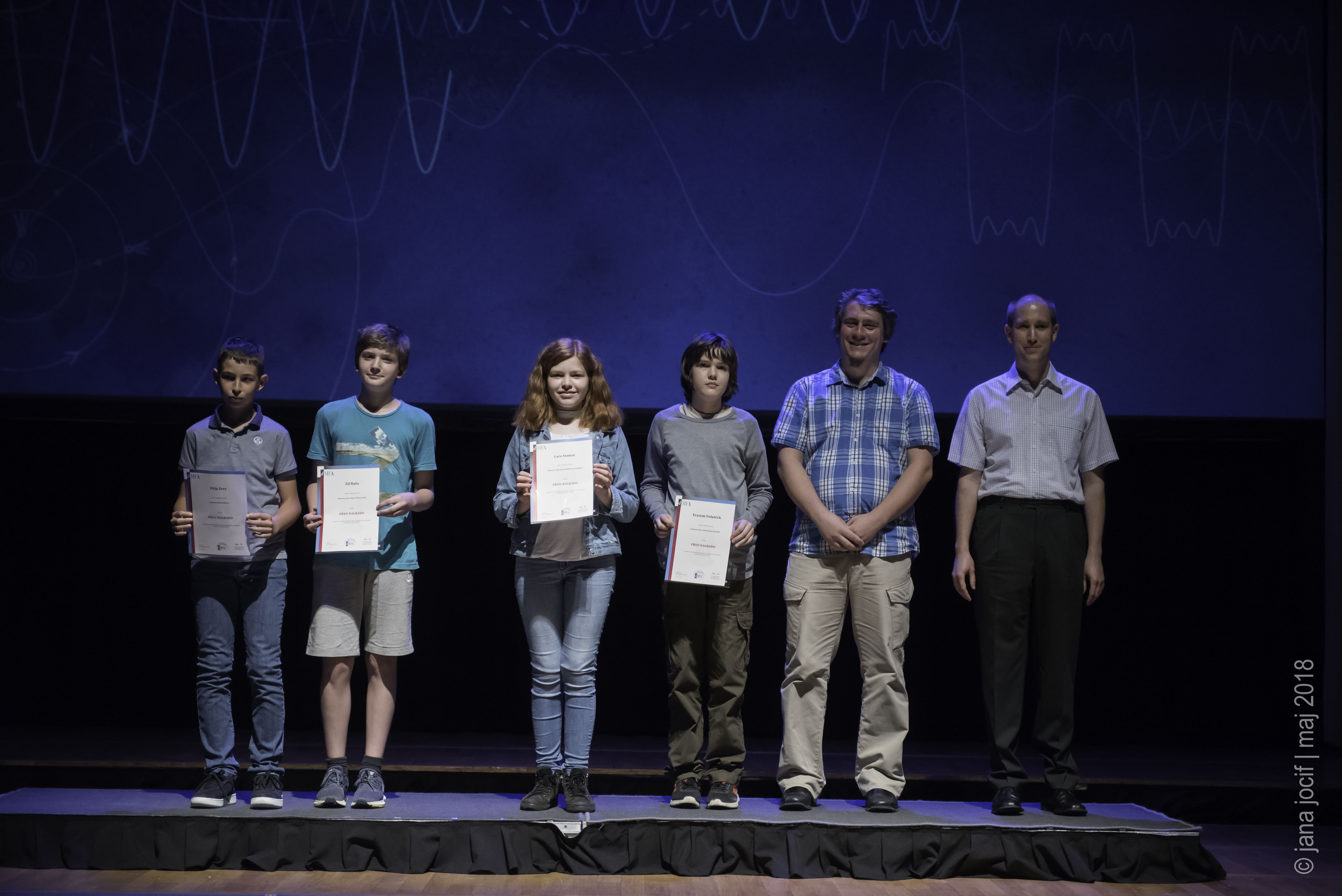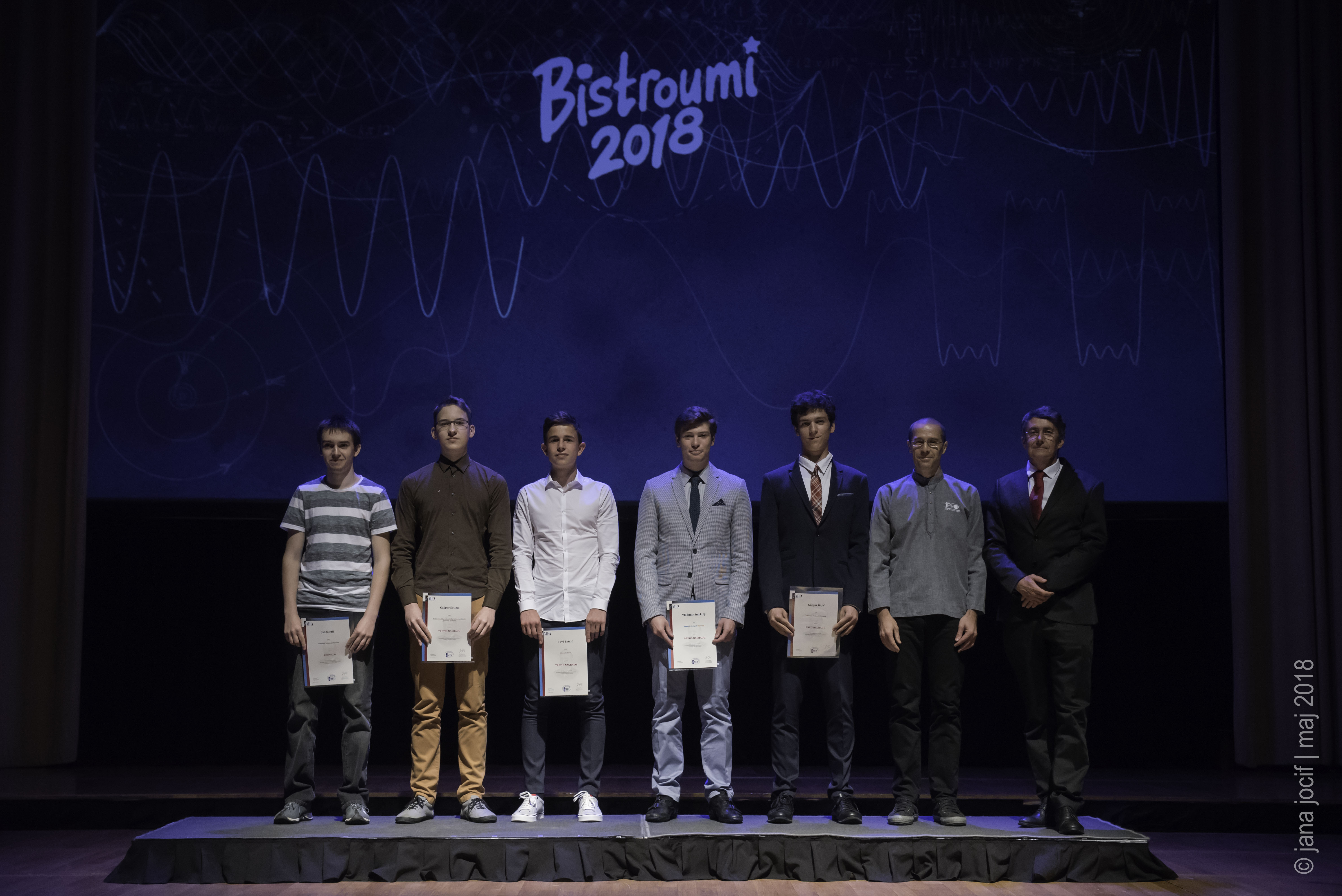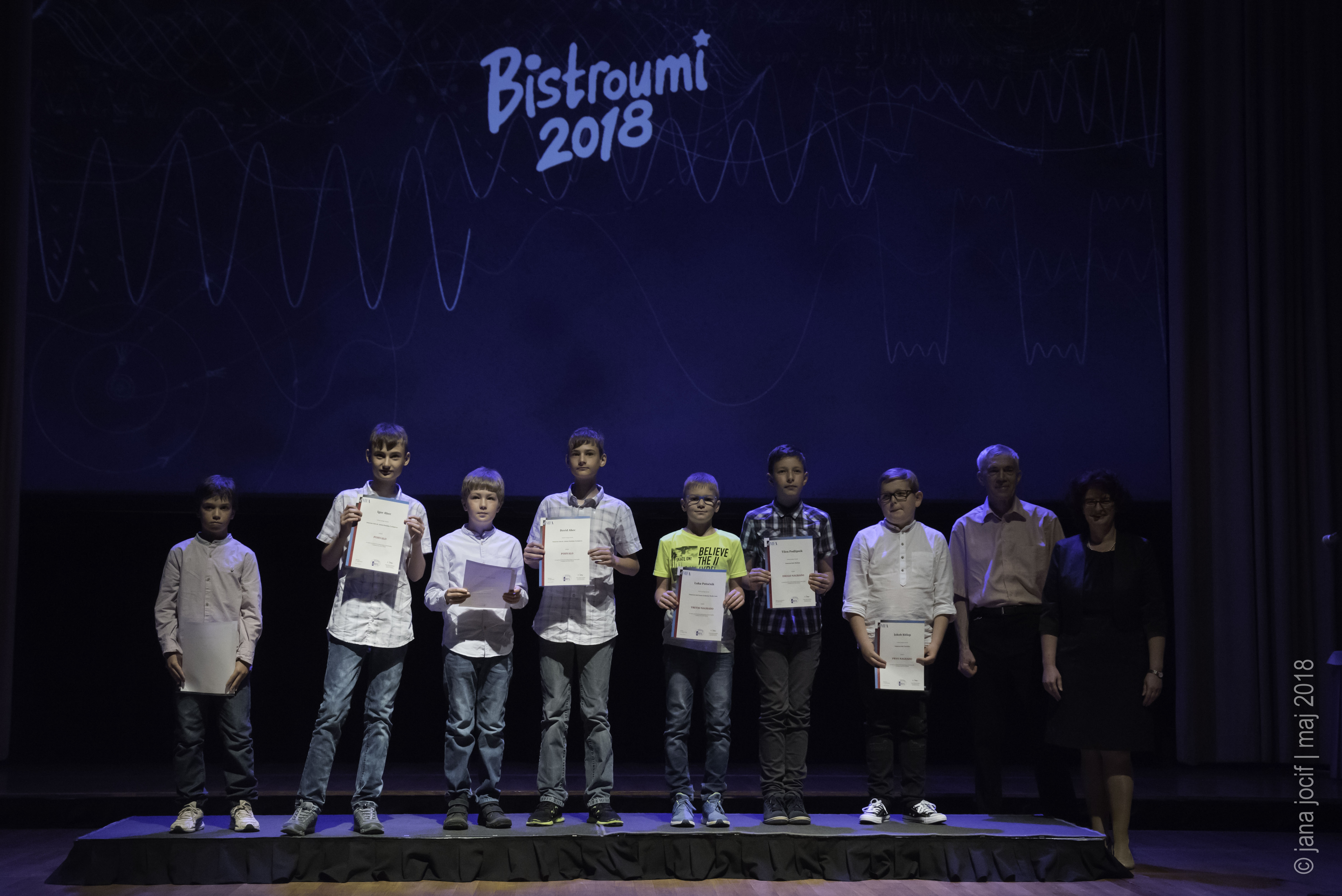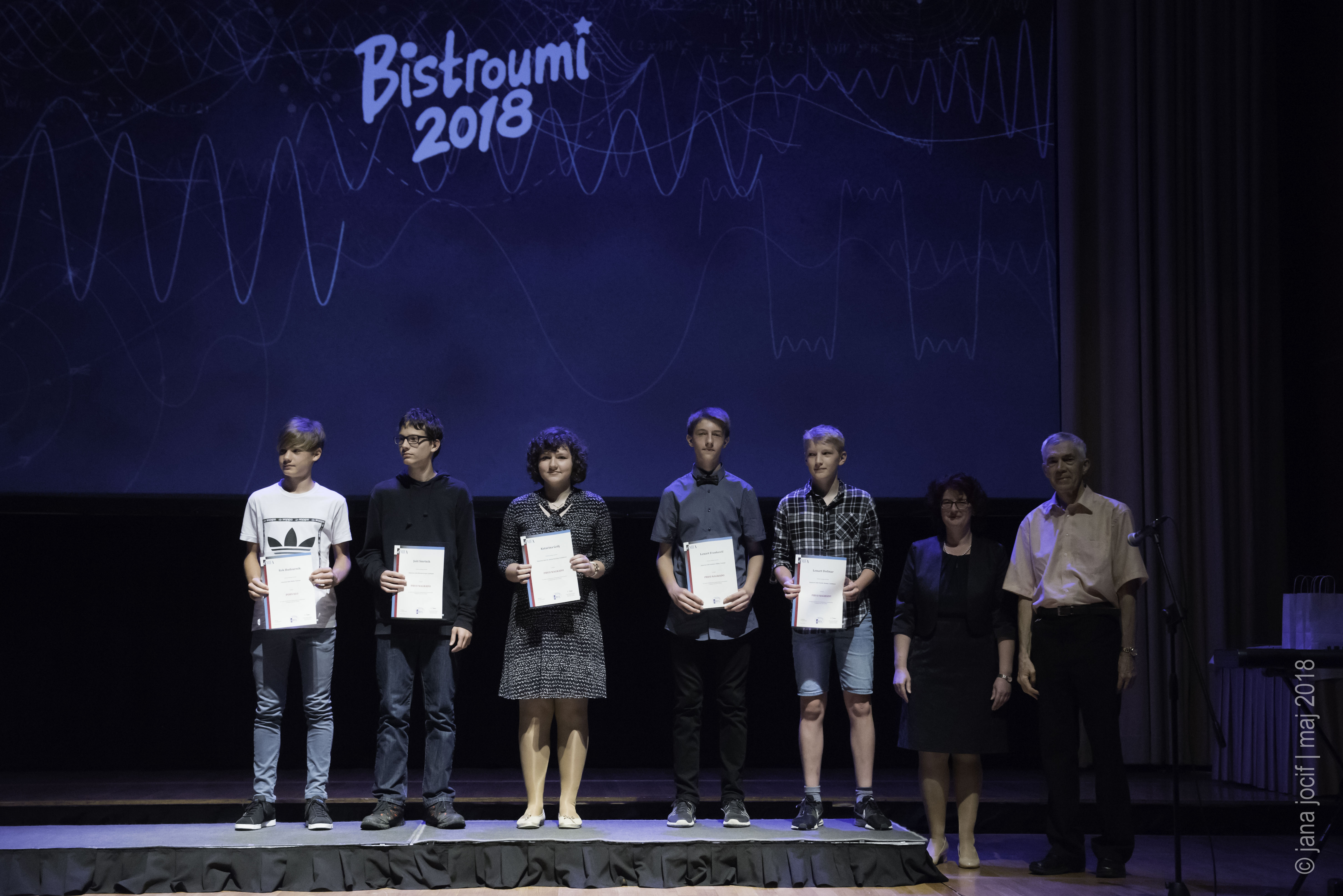 DMFA Slovenije dovoljuje shranitev slik v elektronski obliki in uporabo v individualne namene nagrajenih tekmovalcev. Uporaba posameznih slik na spletnih straneh šol ali v šolskih publikacijah je dovoljena, navesti je potrebno vir slik s povezavo na spletno stran DMFA Slovenije: <a href="http://www.dmfa.si/" title="DMFA Slovenije">www.dmfa.si</a>. Avtor slik: Jana Jocif.