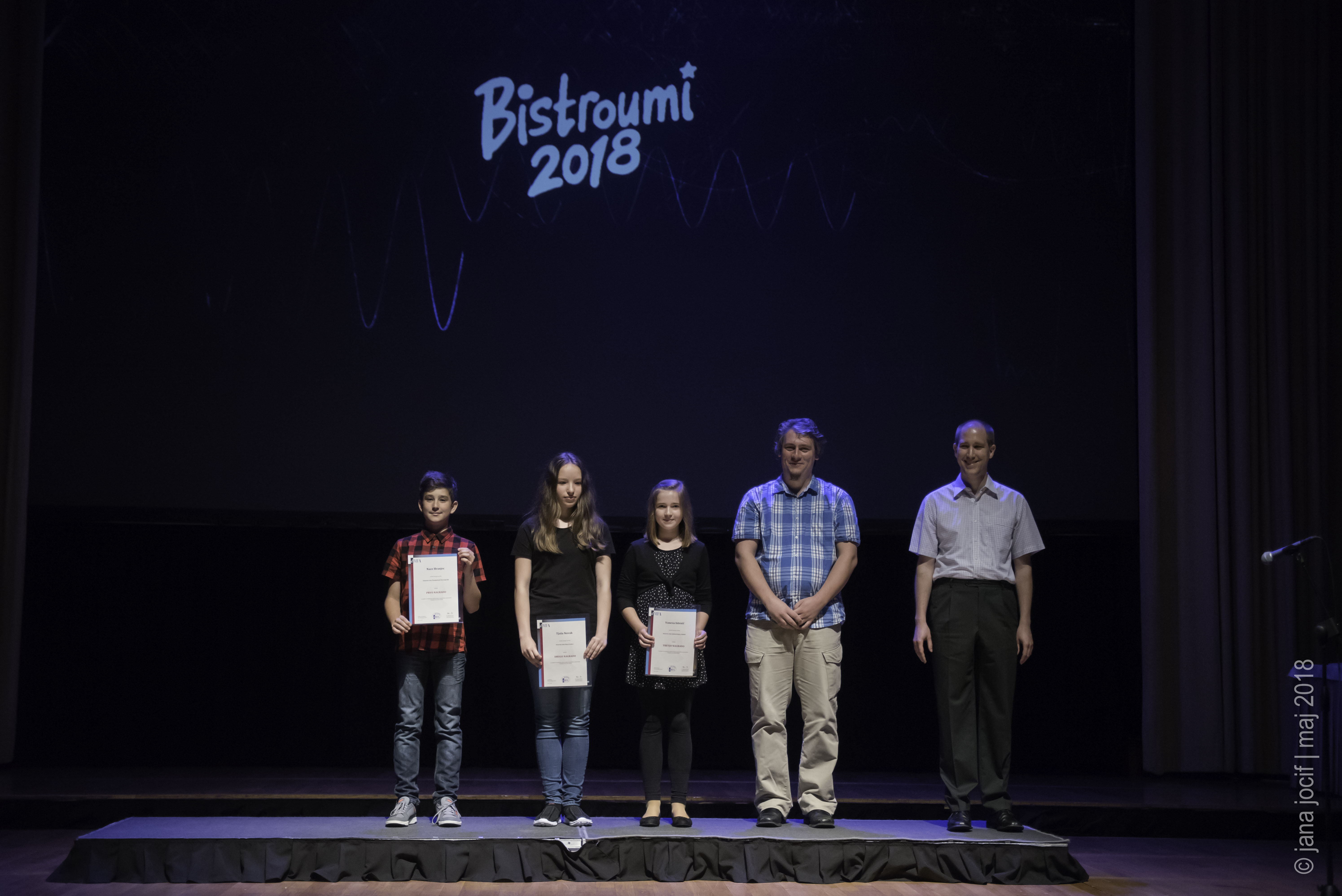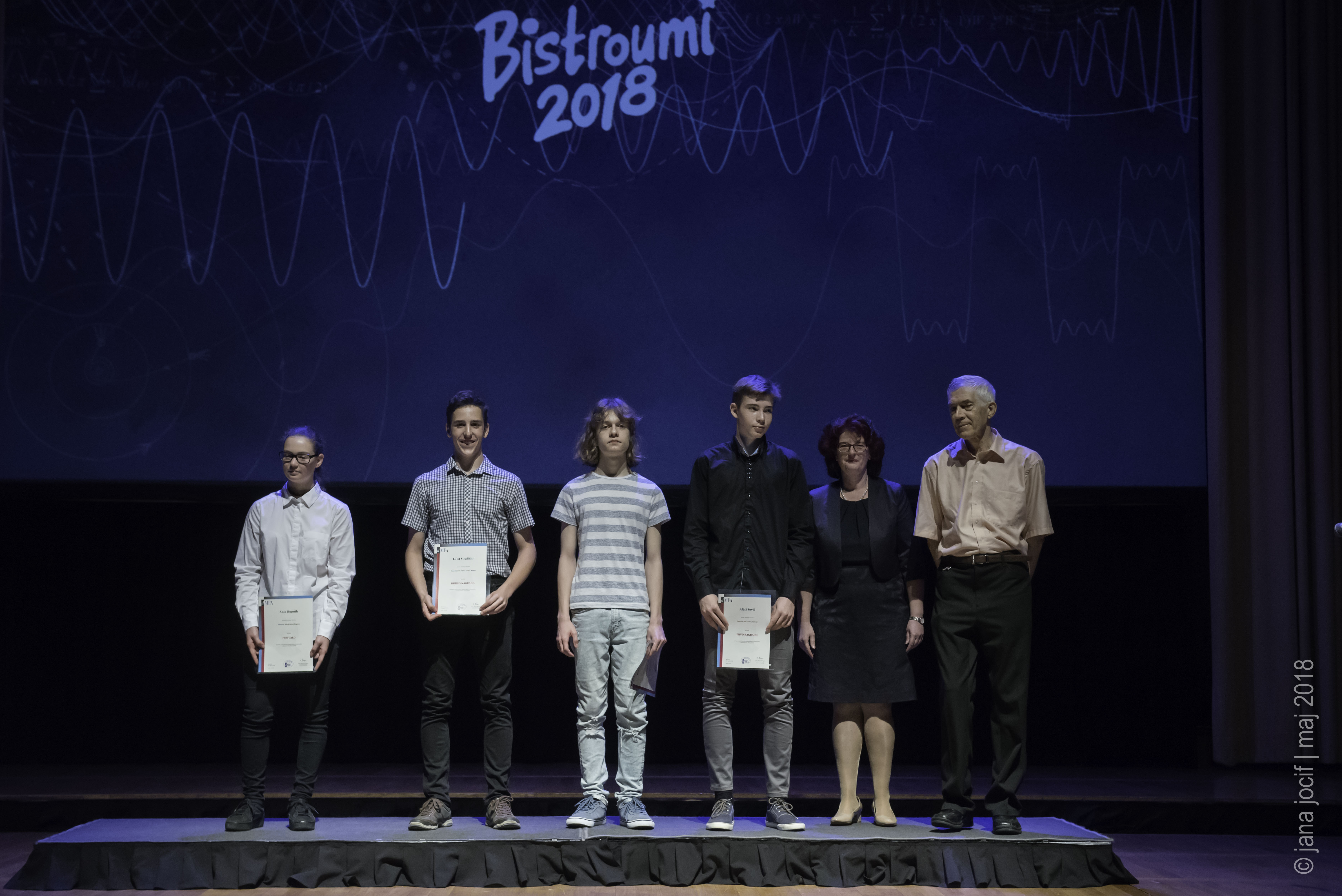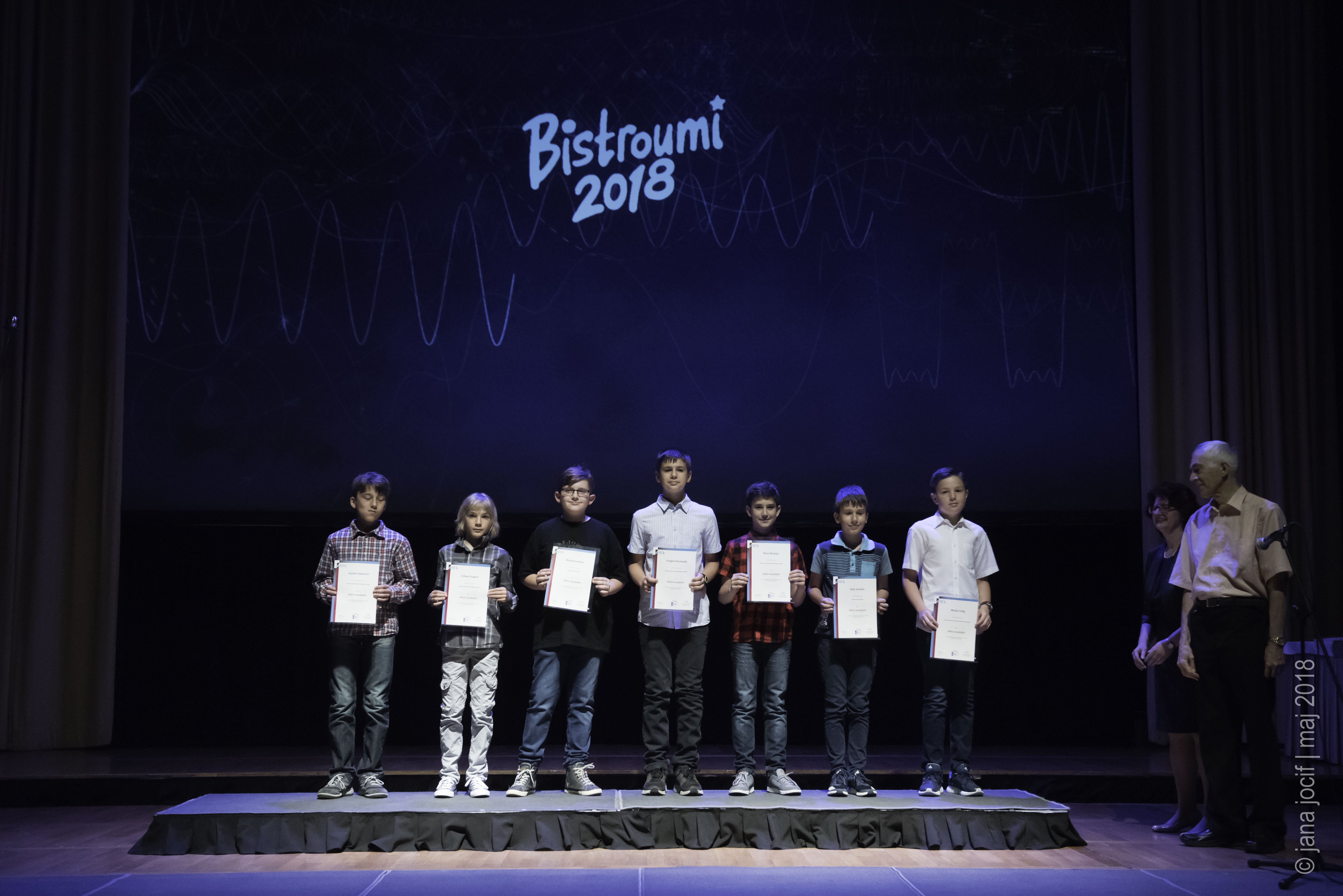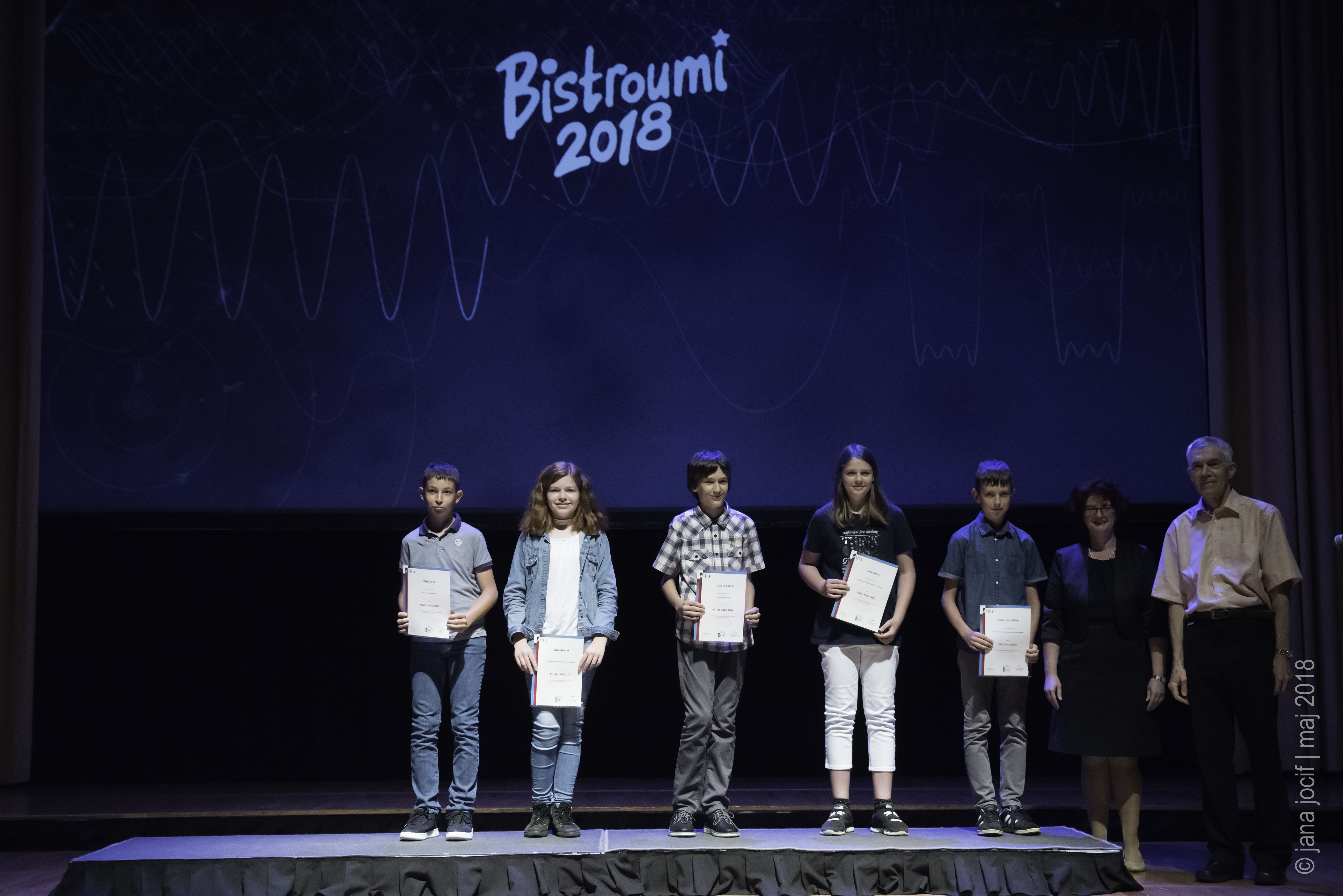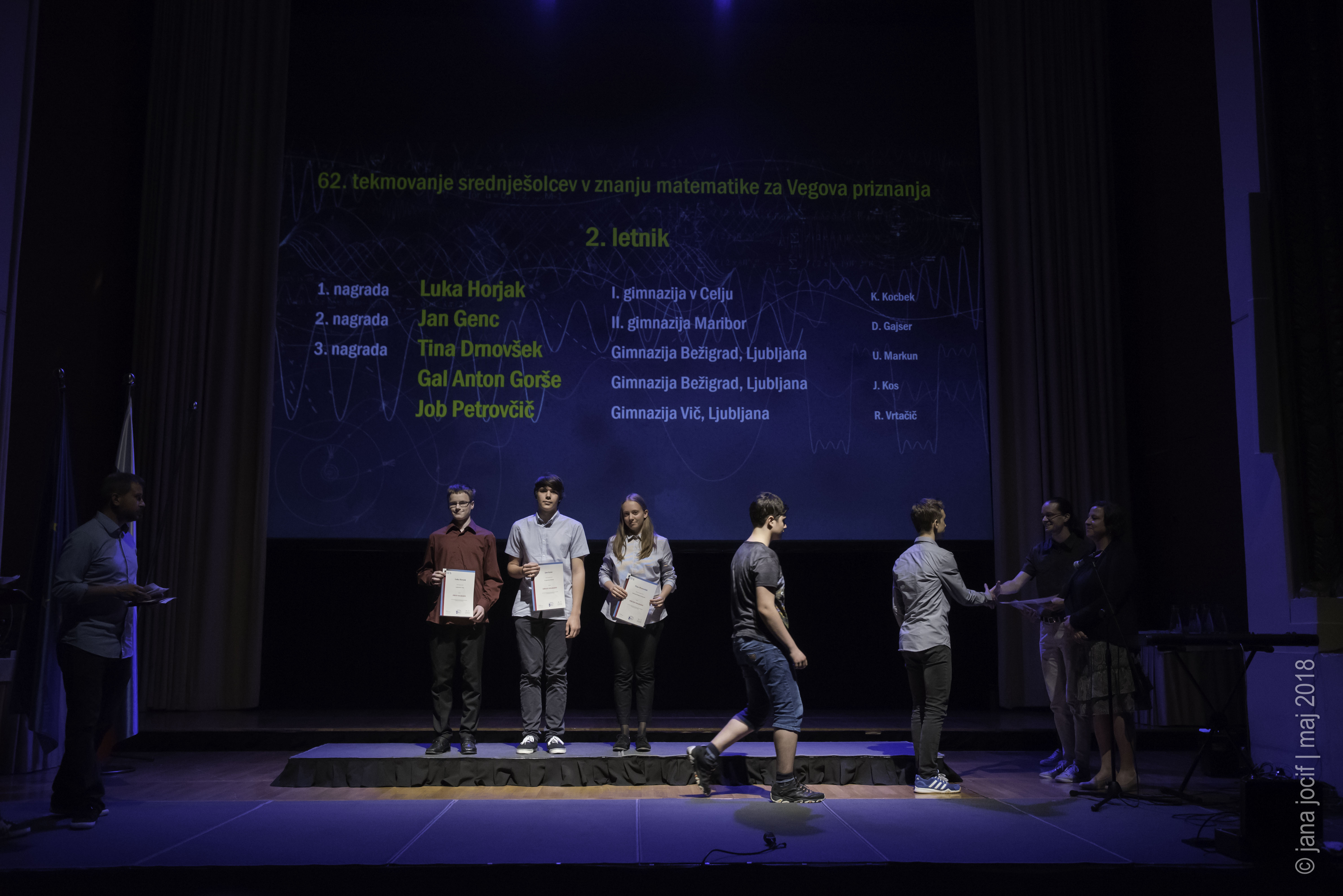 DMFA Slovenije dovoljuje shranitev slik v elektronski obliki in uporabo v individualne namene nagrajenih tekmovalcev. Uporaba posameznih slik na spletnih straneh šol ali v šolskih publikacijah je dovoljena, navesti je potrebno vir slik s povezavo na spletno stran DMFA Slovenije: <a href="http://www.dmfa.si/" title="DMFA Slovenije">www.dmfa.si</a>. Avtor slik: Jana Jocif.