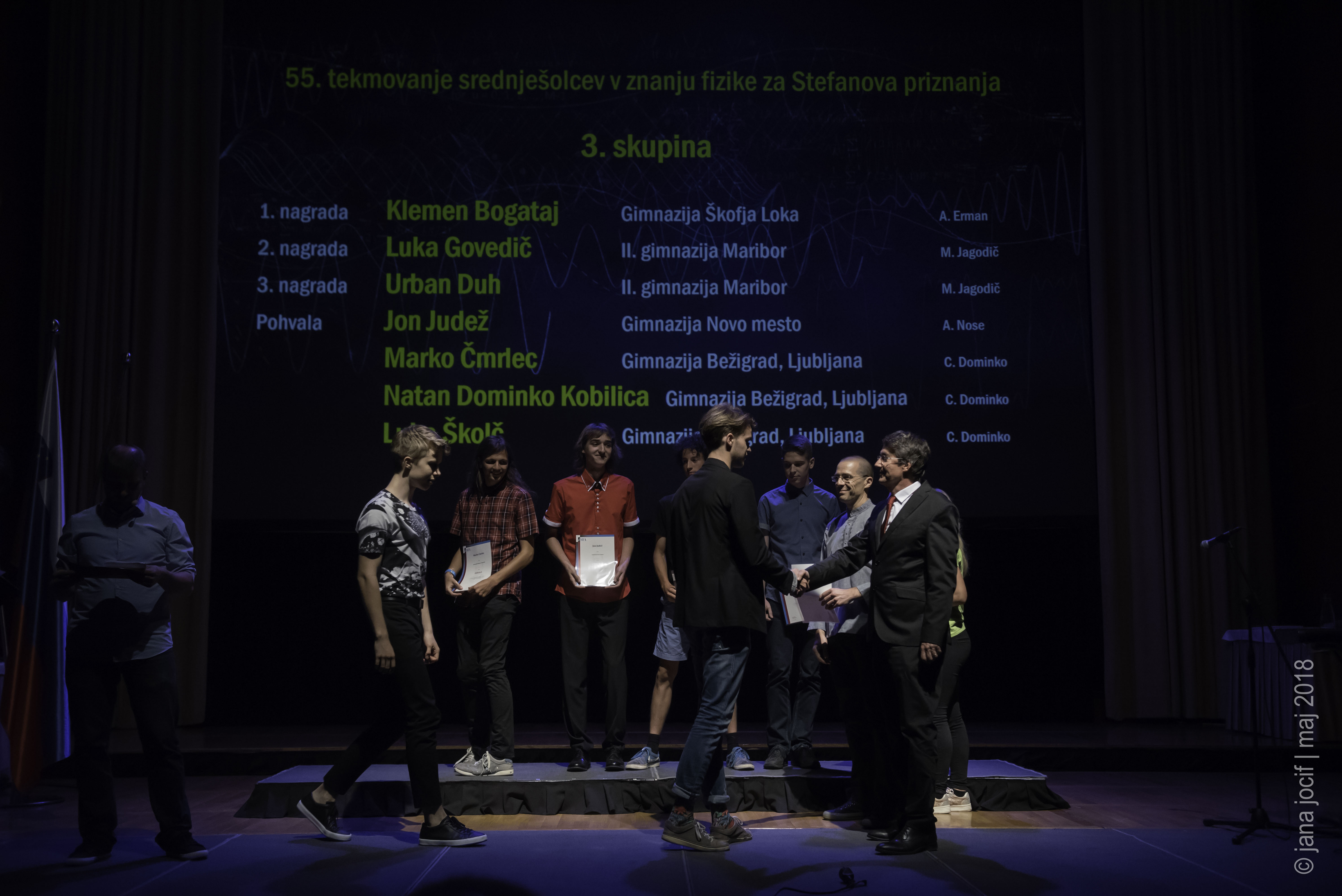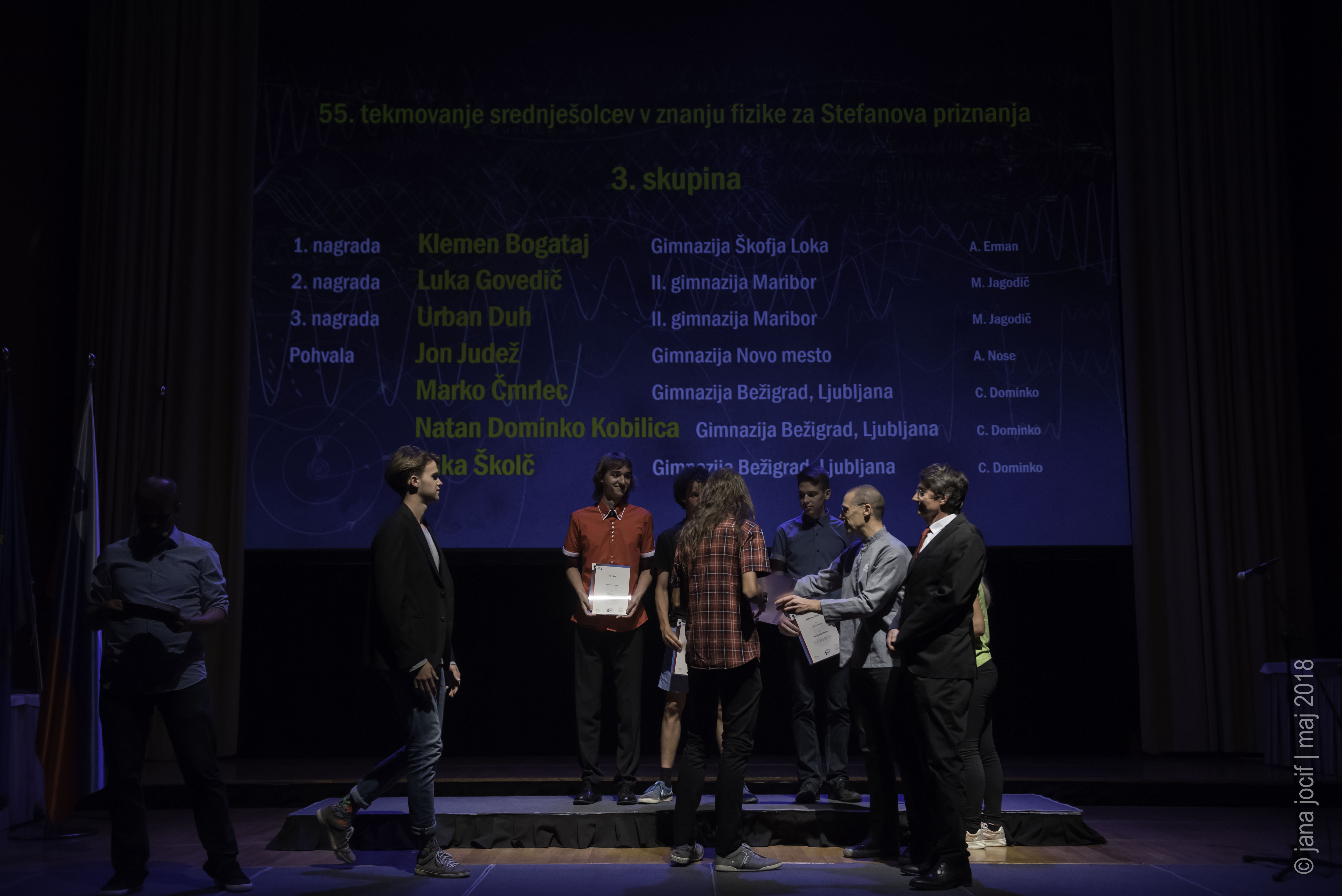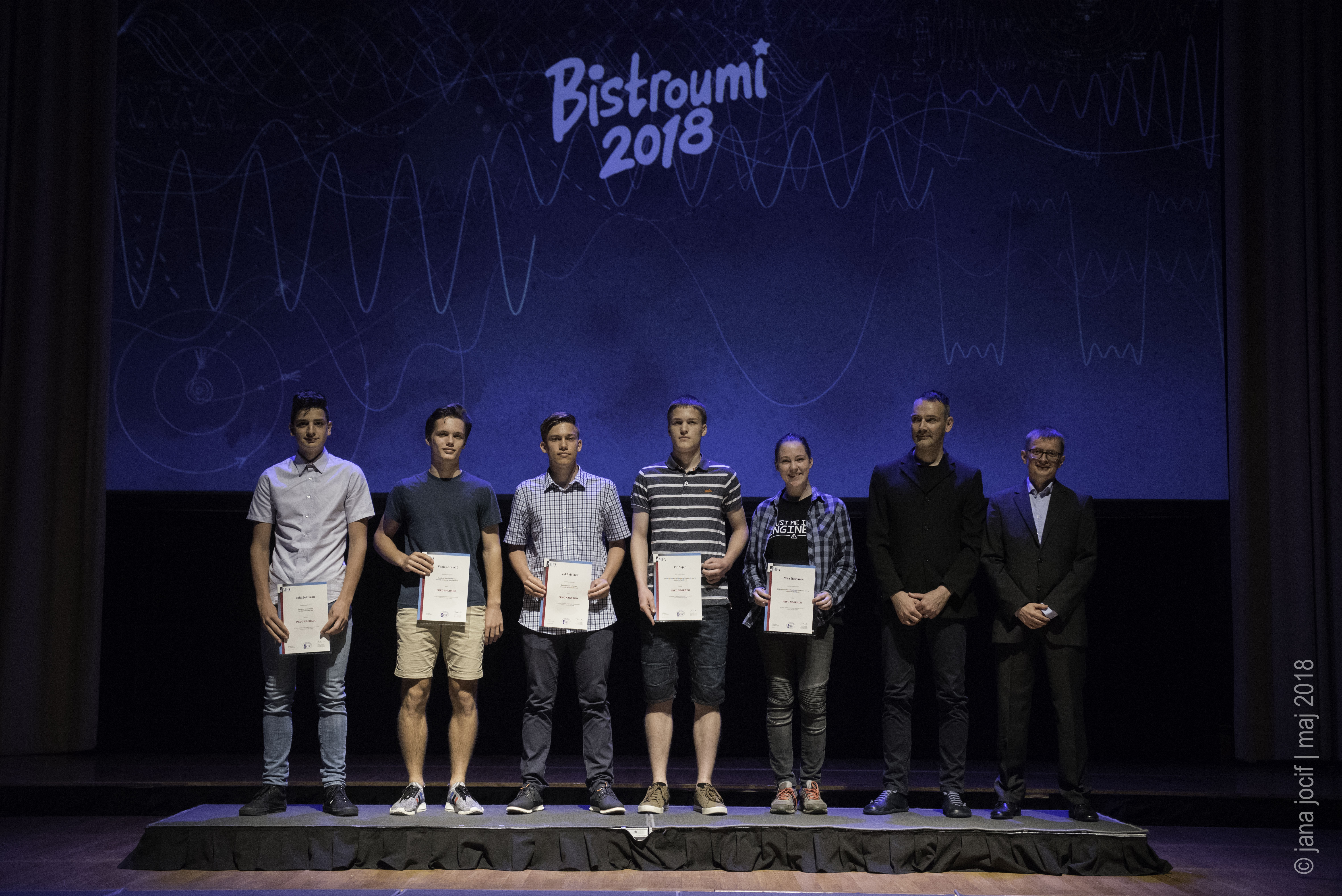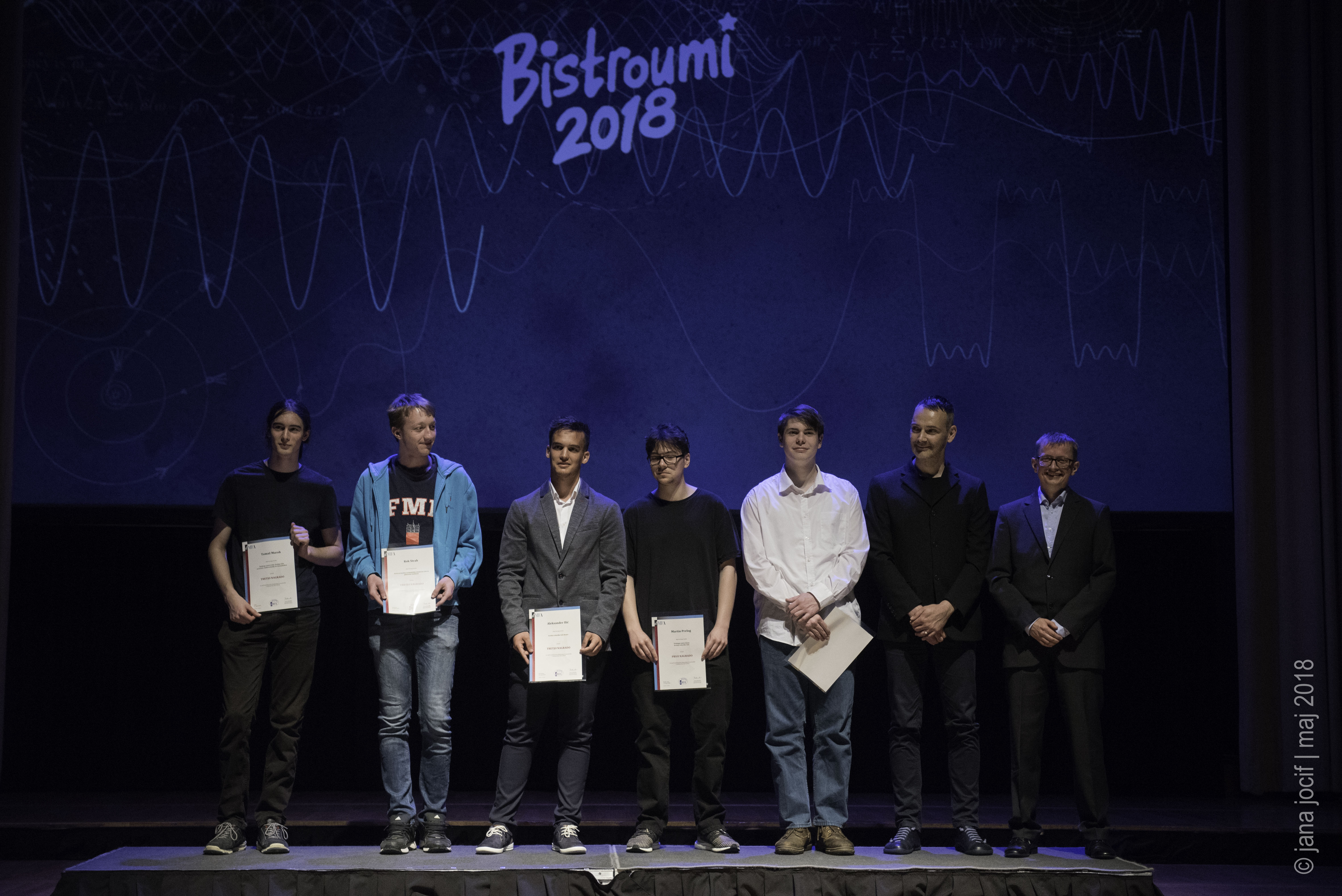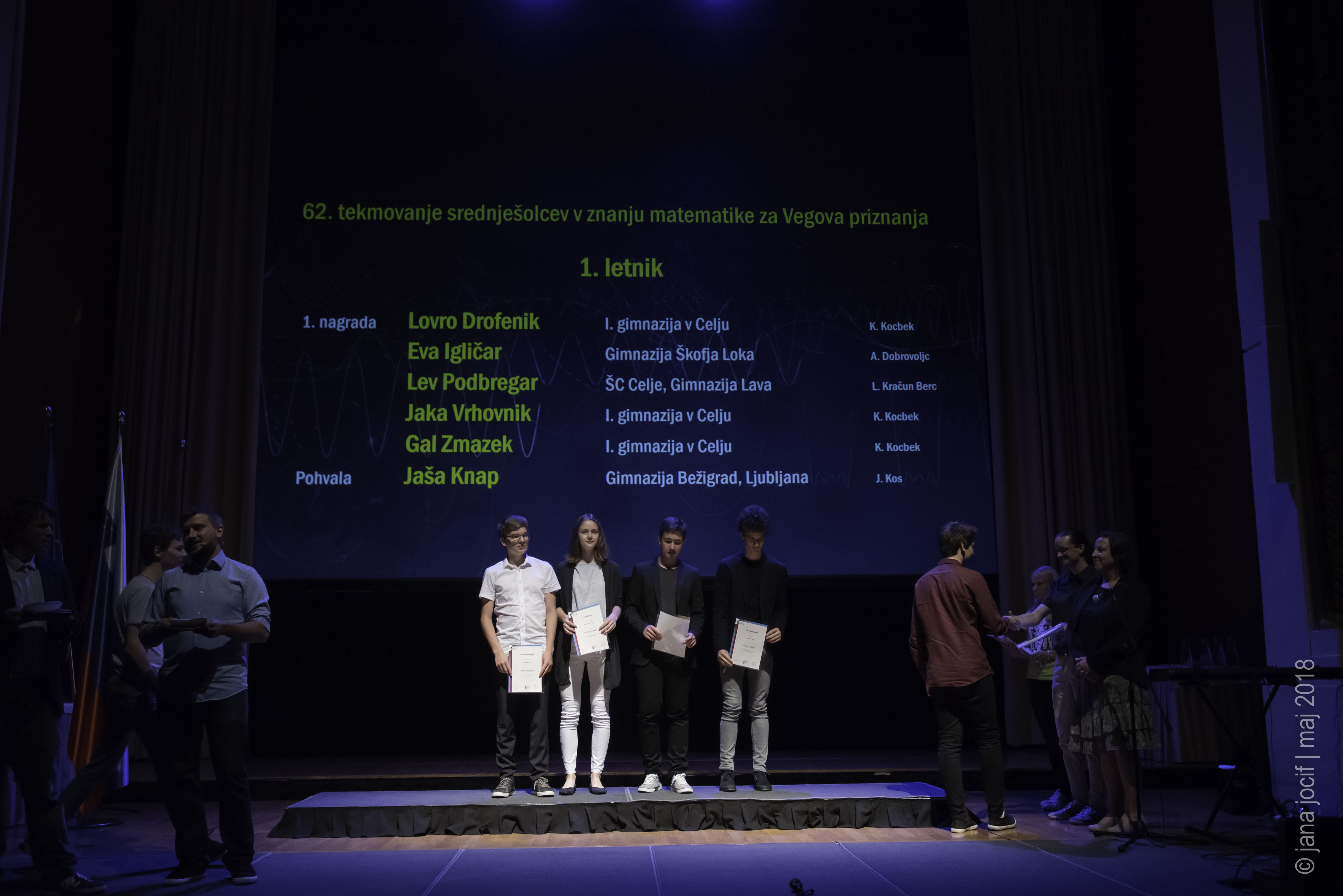 DMFA Slovenije dovoljuje shranitev slik v elektronski obliki in uporabo v individualne namene nagrajenih tekmovalcev. Uporaba posameznih slik na spletnih straneh šol ali v šolskih publikacijah je dovoljena, navesti je potrebno vir slik s povezavo na spletno stran DMFA Slovenije: <a href="http://www.dmfa.si/" title="DMFA Slovenije">www.dmfa.si</a>. Avtor slik: Jana Jocif.
