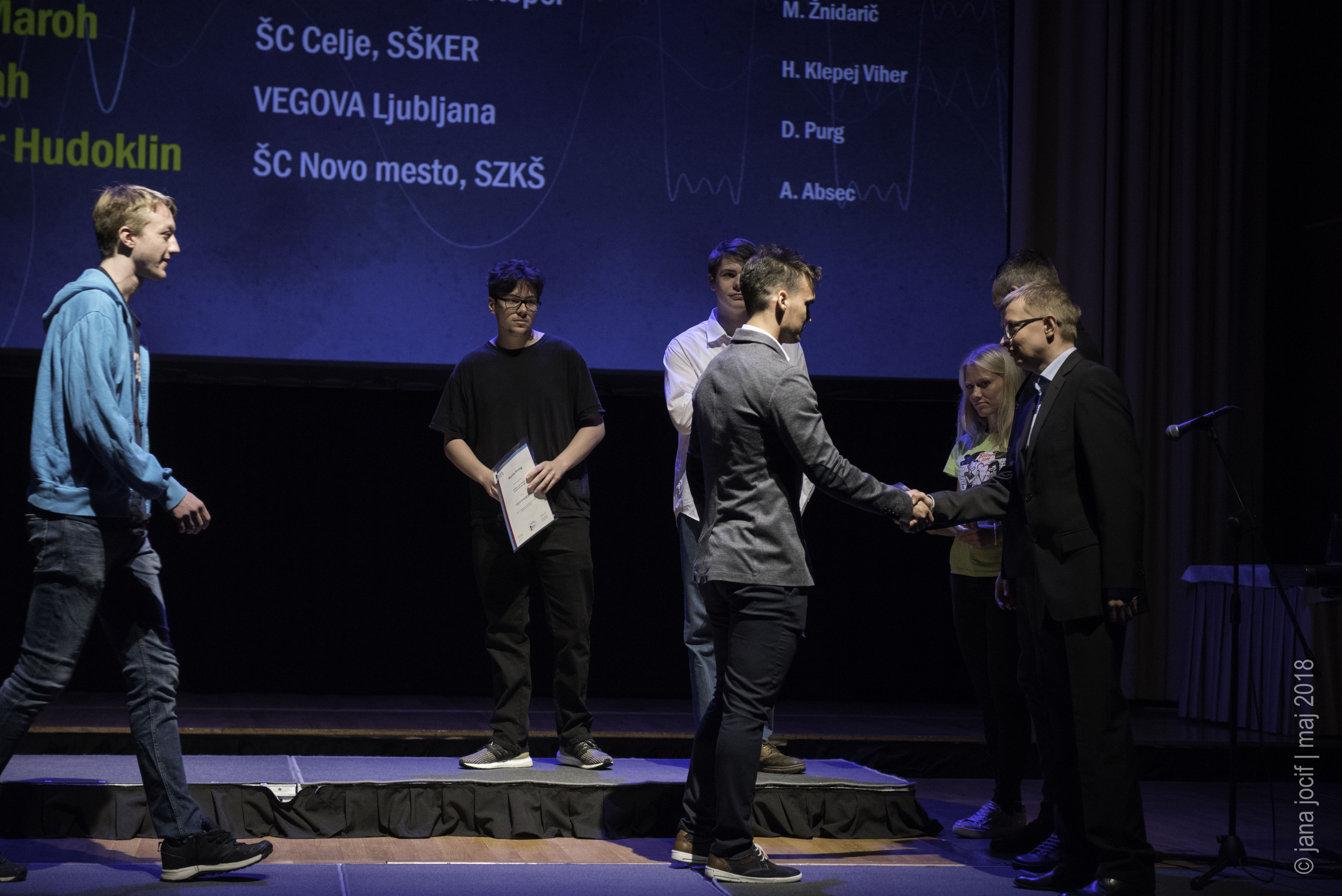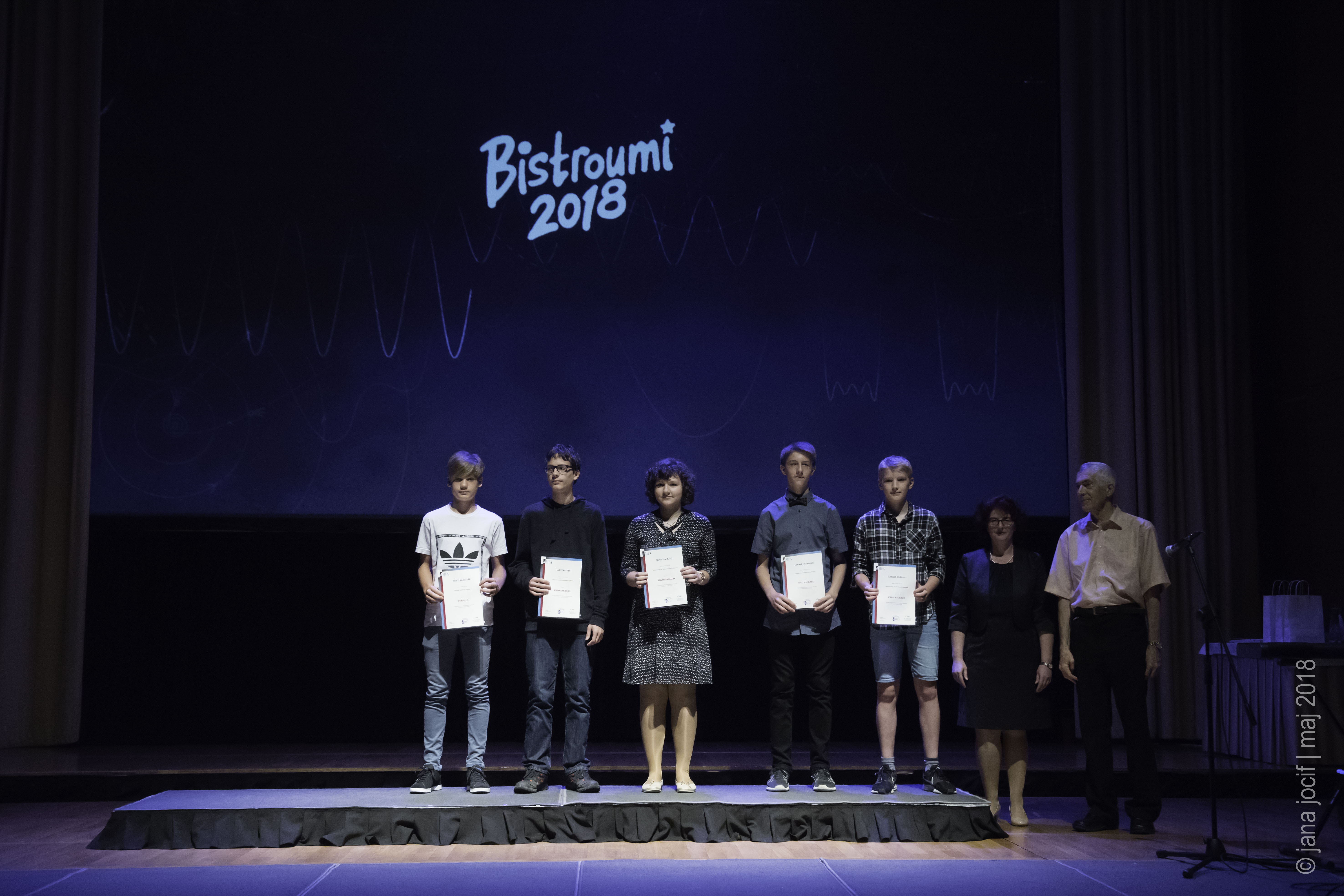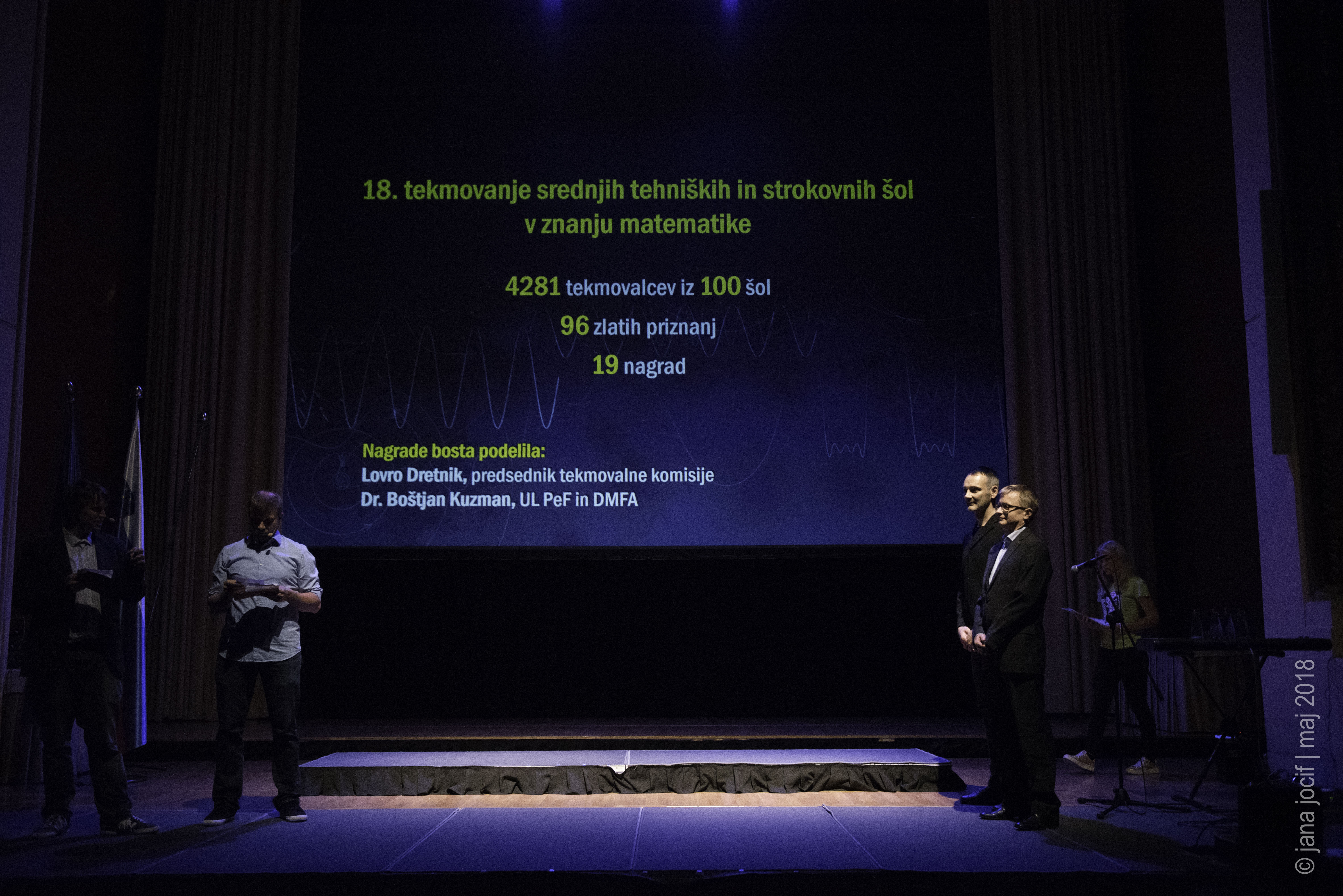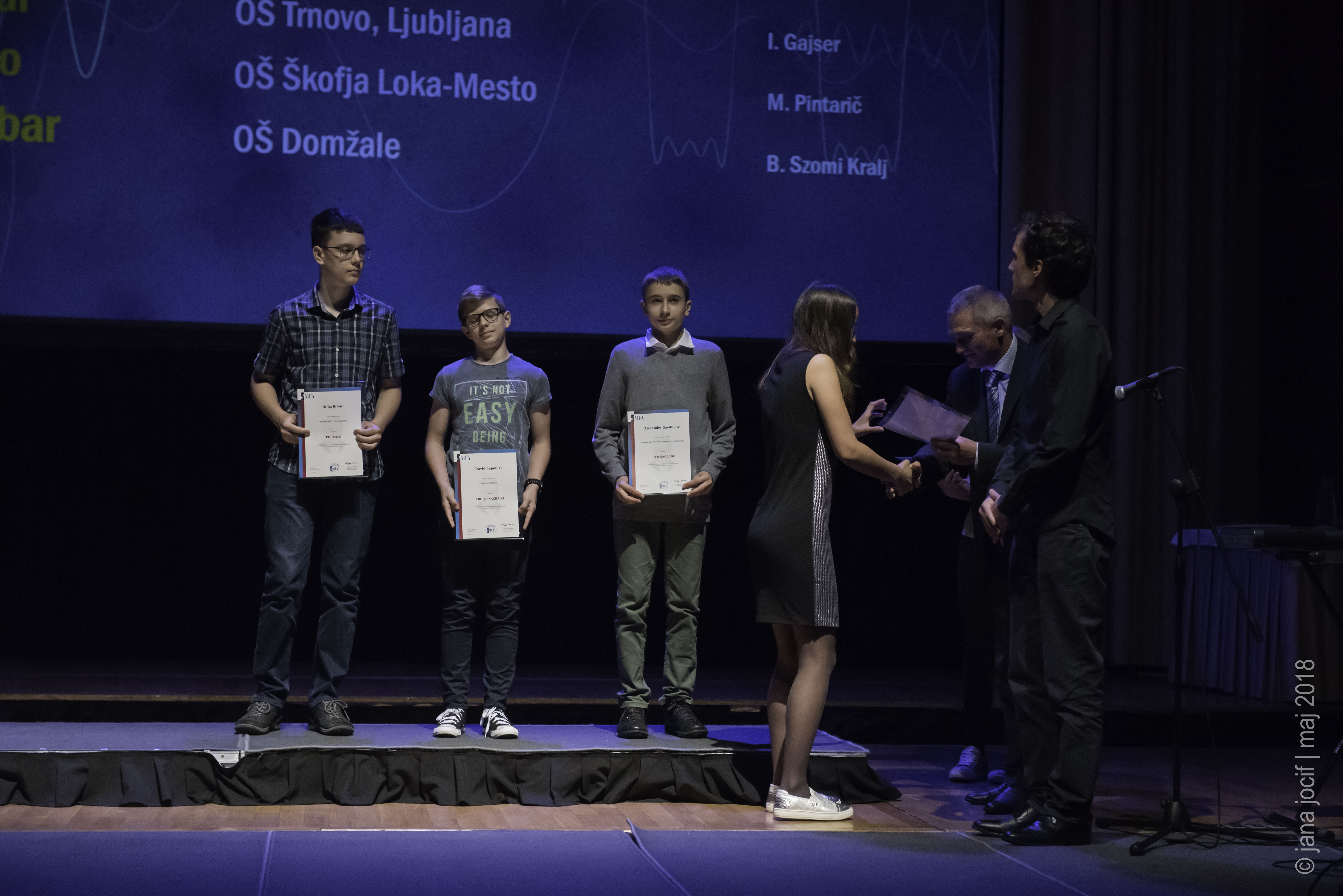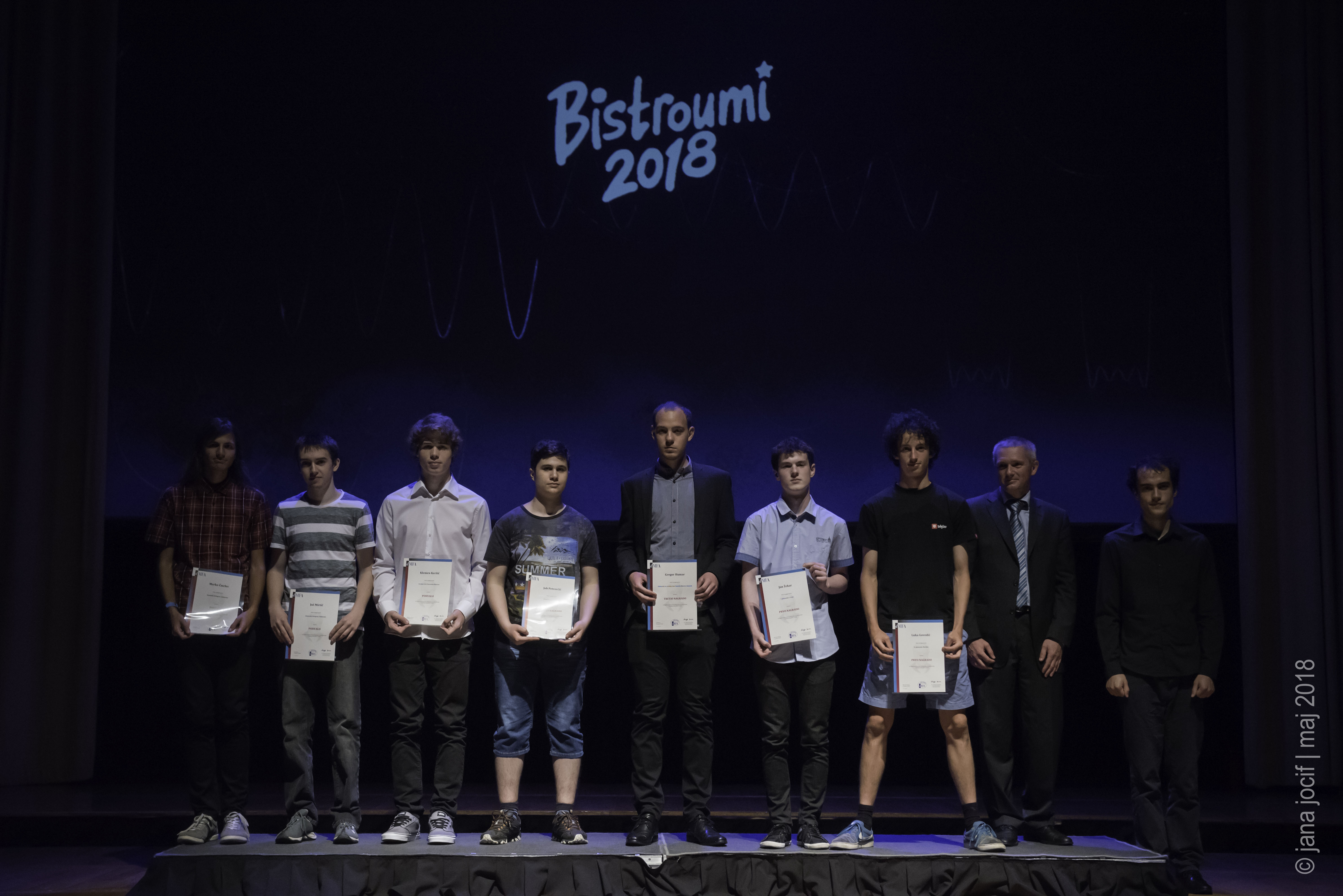 DMFA Slovenije dovoljuje shranitev slik v elektronski obliki in uporabo v individualne namene nagrajenih tekmovalcev. Uporaba posameznih slik na spletnih straneh šol ali v šolskih publikacijah je dovoljena, navesti je potrebno vir slik s povezavo na spletno stran DMFA Slovenije: <a href="http://www.dmfa.si/" title="DMFA Slovenije">www.dmfa.si</a>. Avtor slik: Jana Jocif.