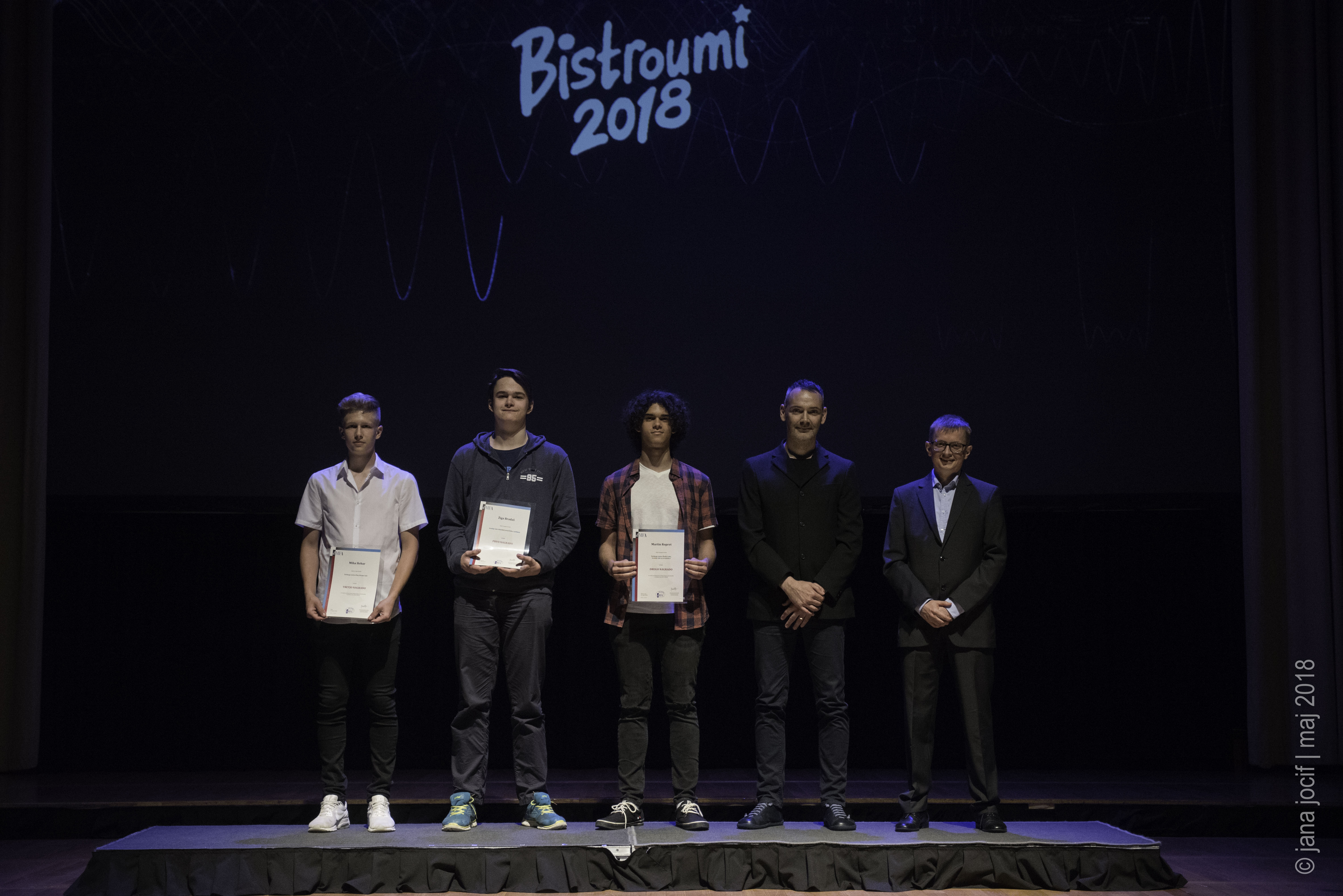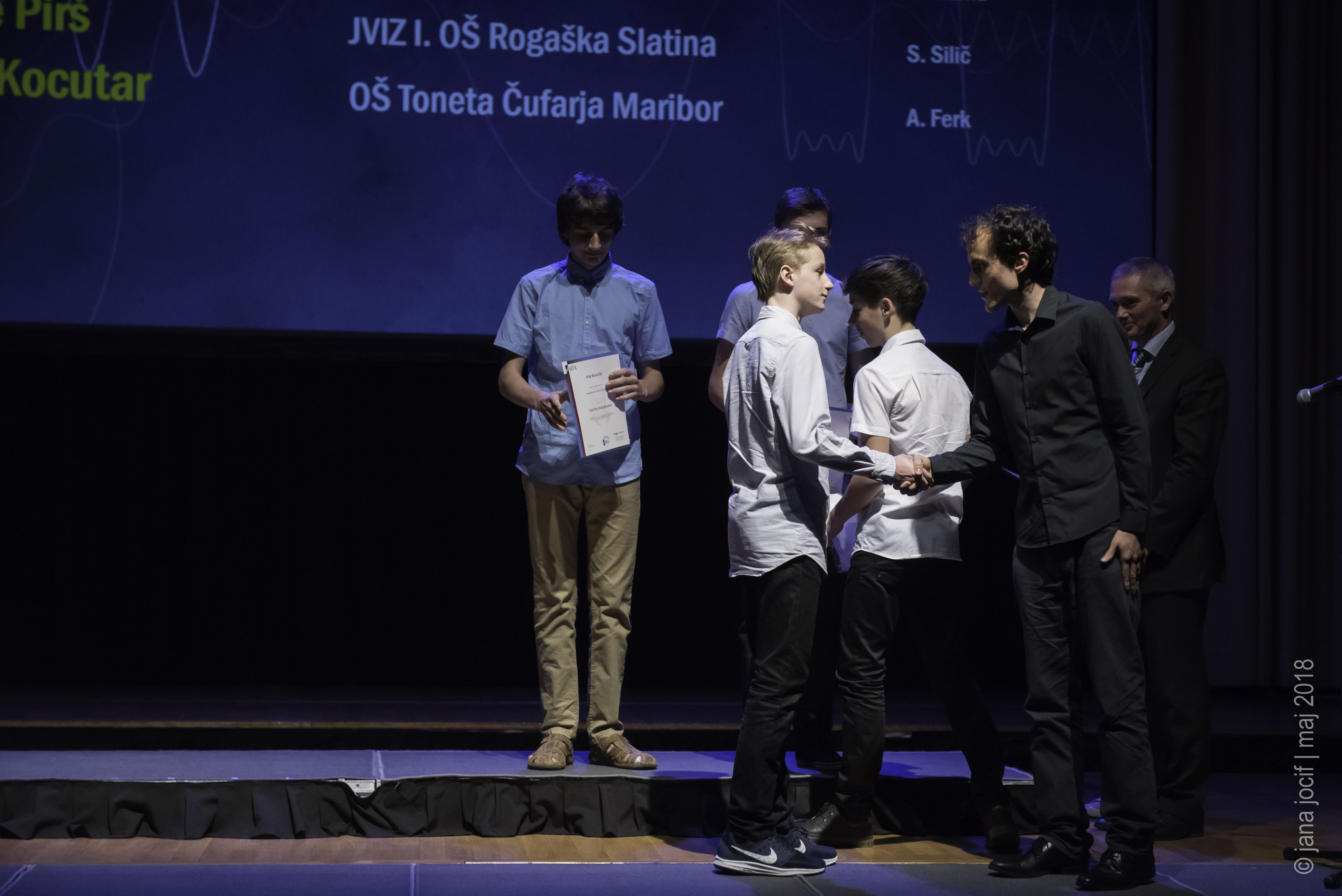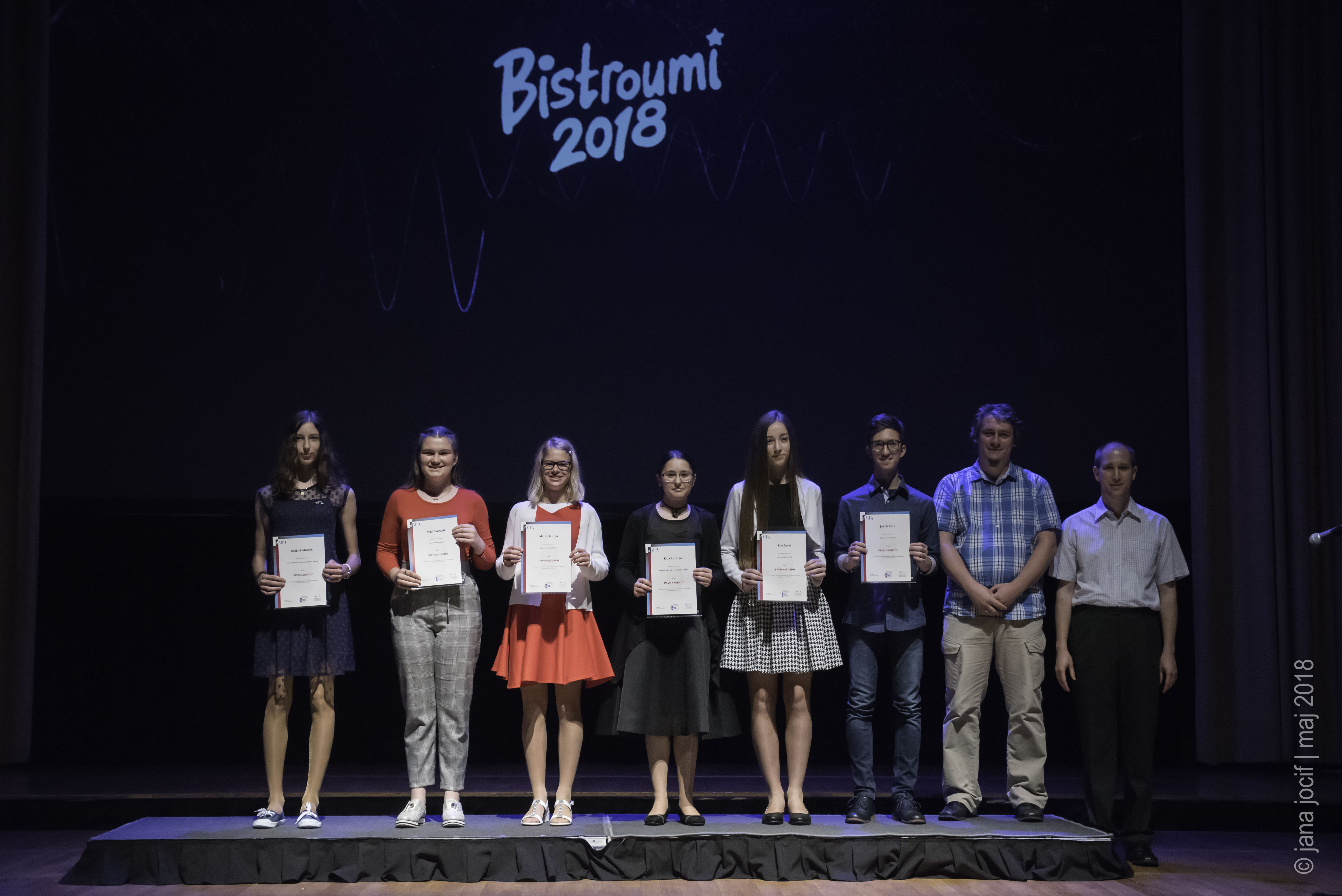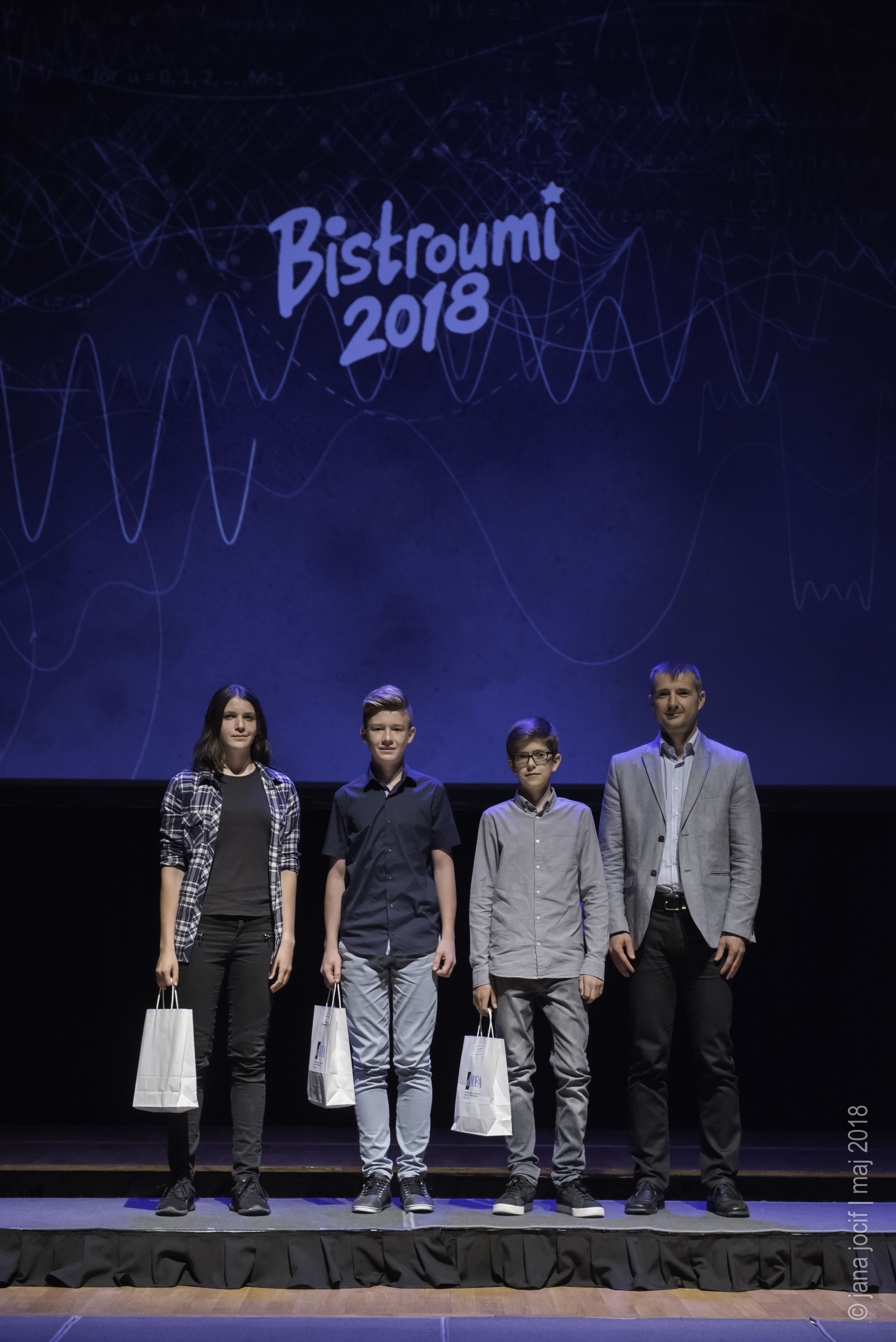 DMFA Slovenije dovoljuje shranitev slik v elektronski obliki in uporabo v individualne namene nagrajenih tekmovalcev. Uporaba posameznih slik na spletnih straneh šol ali v šolskih publikacijah je dovoljena, navesti je potrebno vir slik s povezavo na spletno stran DMFA Slovenije: <a href="http://www.dmfa.si/" title="DMFA Slovenije">www.dmfa.si</a>. Avtor slik: Jana Jocif.
