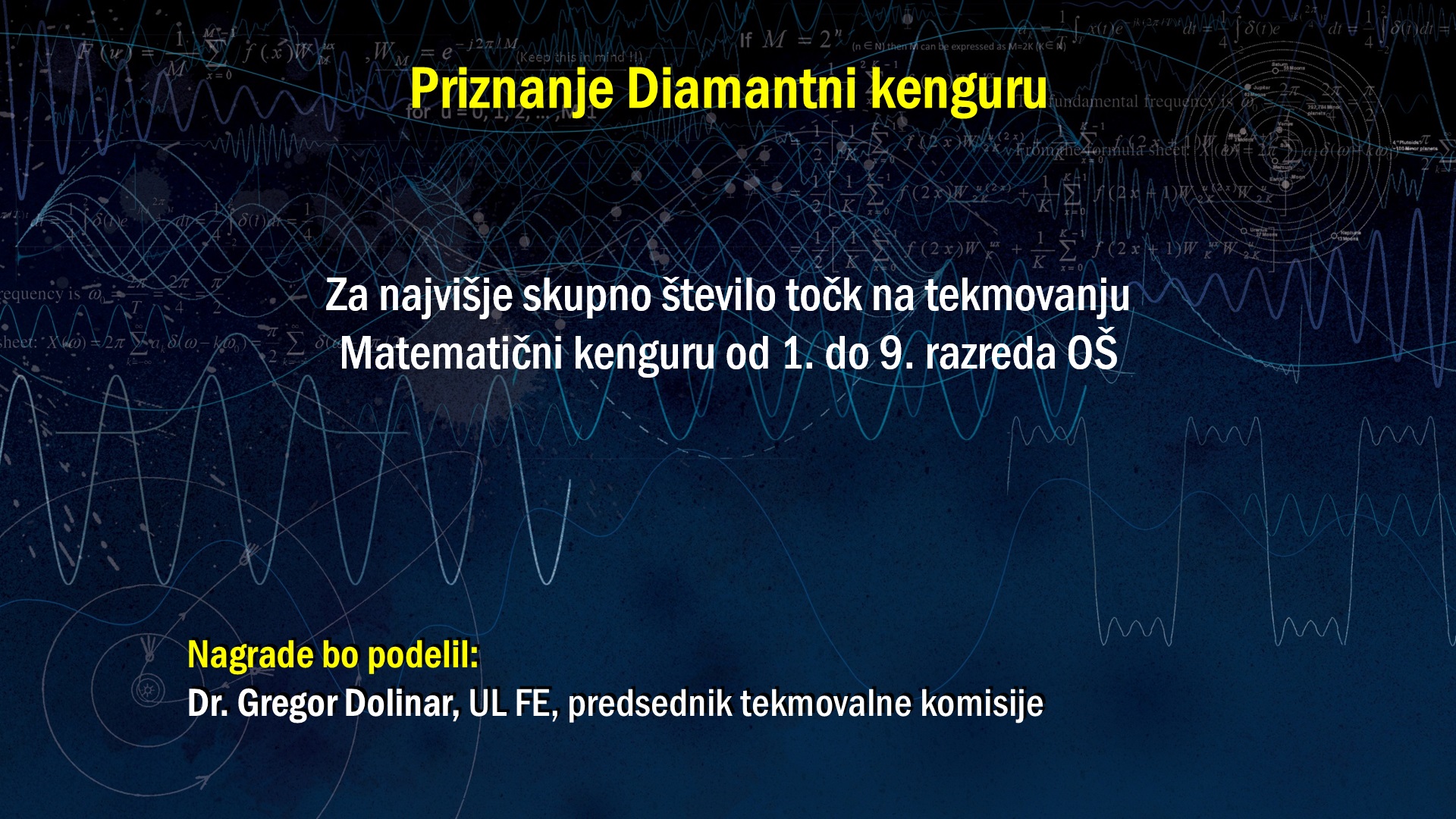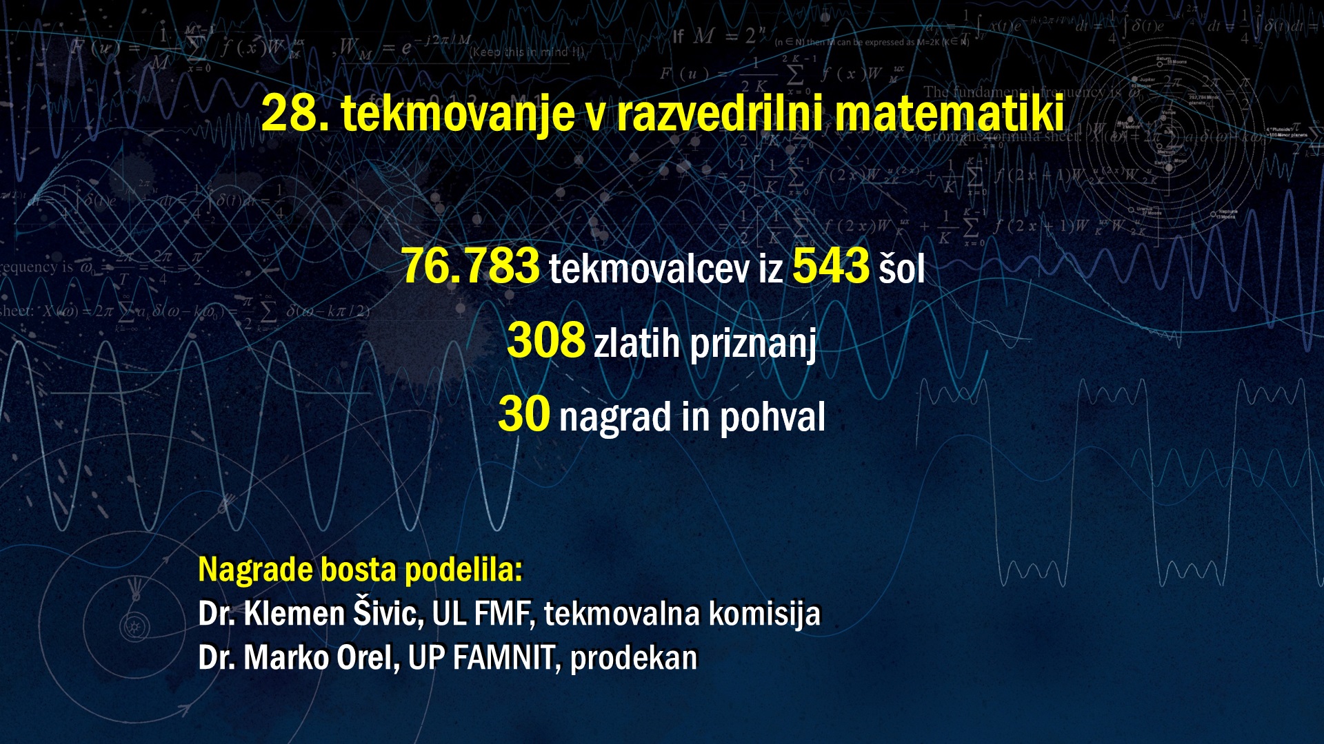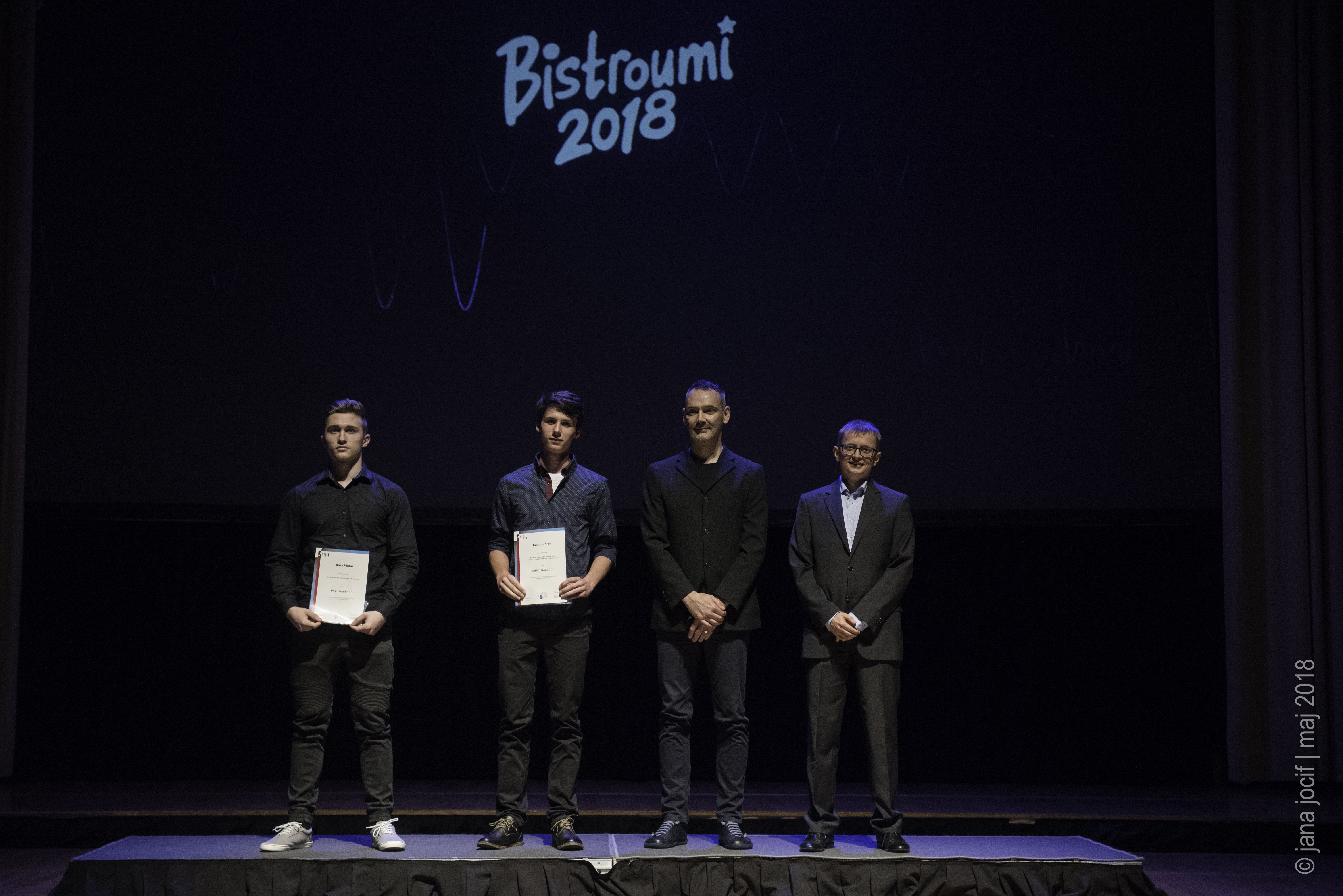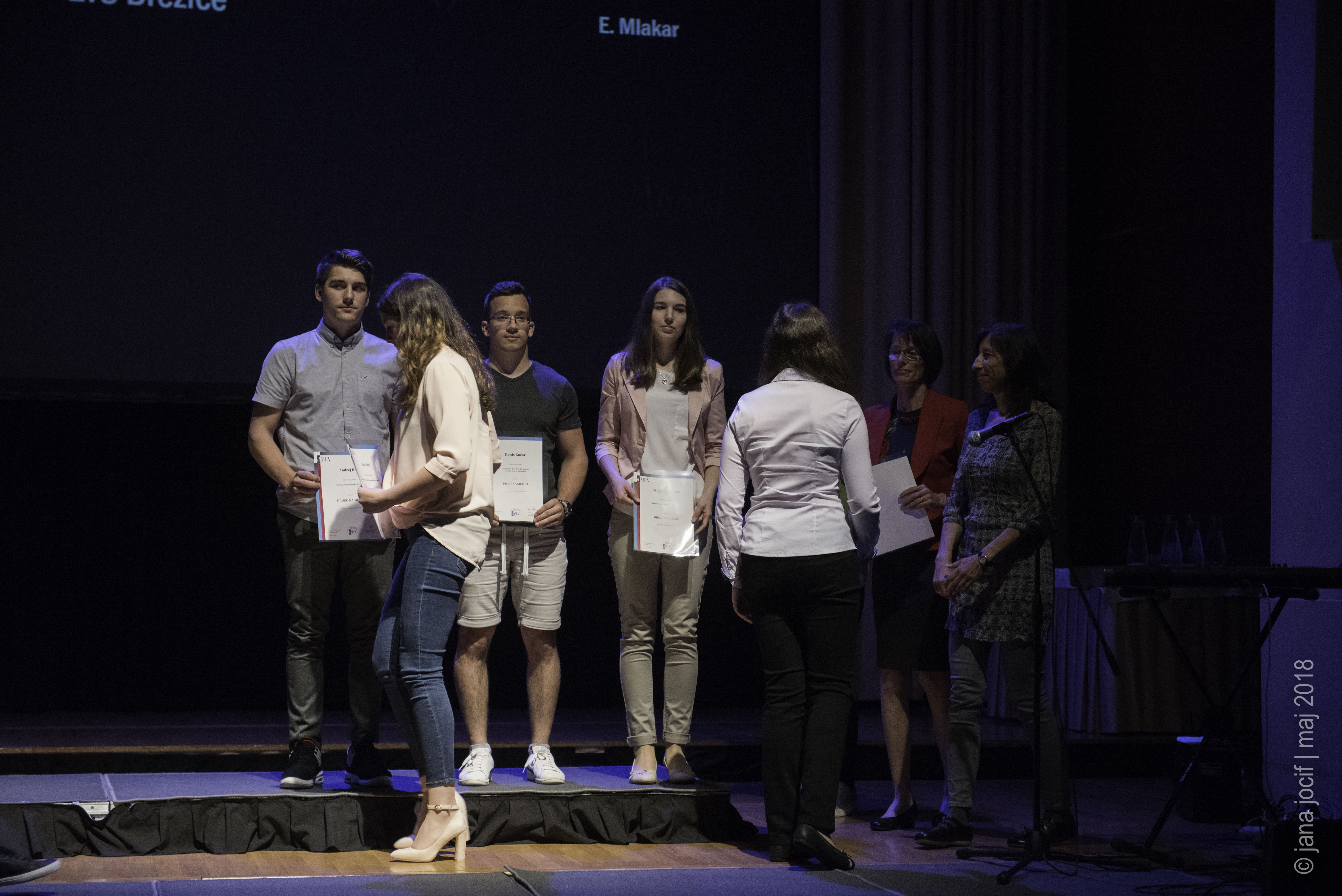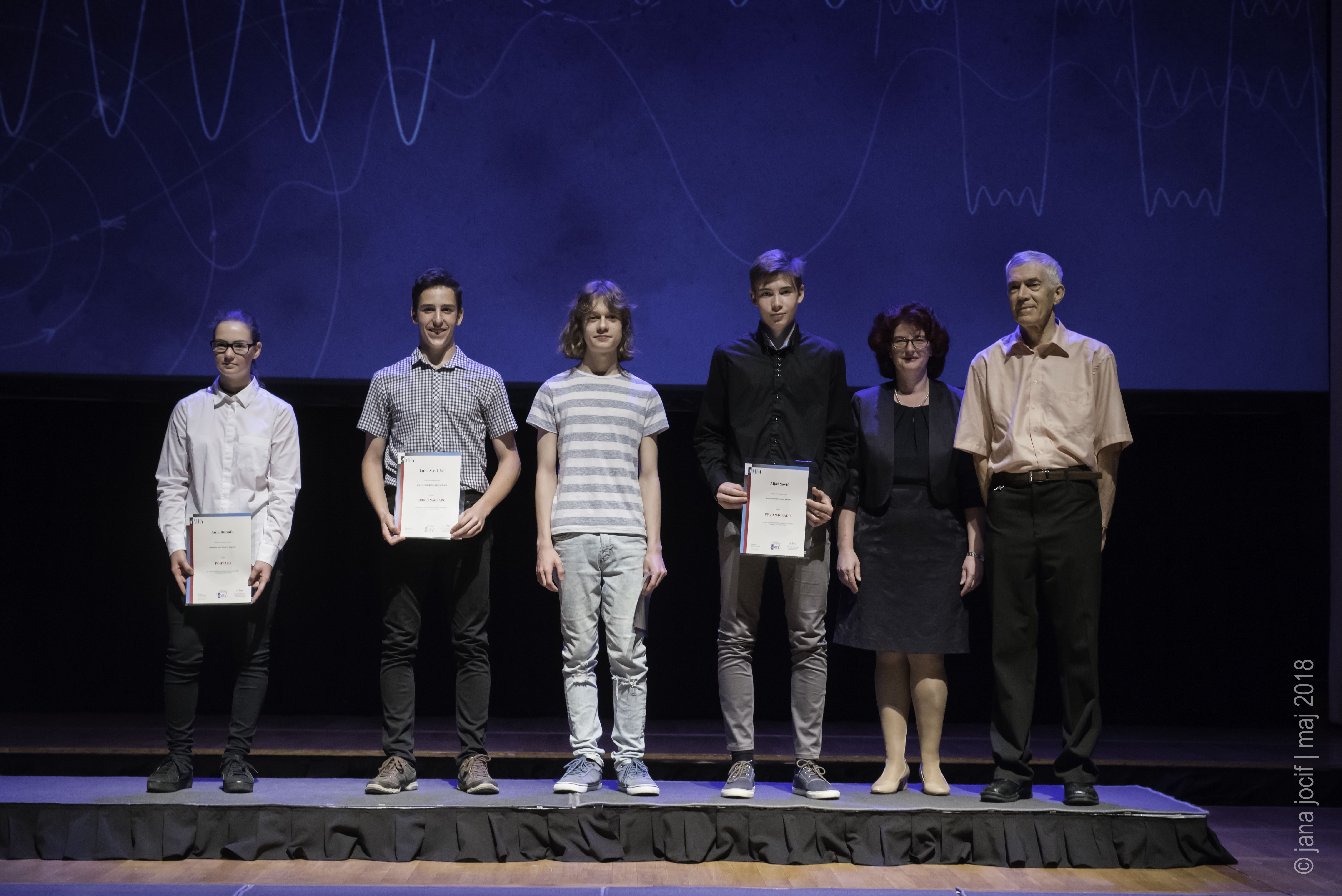 DMFA Slovenije dovoljuje shranitev slik v elektronski obliki in uporabo v individualne namene nagrajenih tekmovalcev. Uporaba posameznih slik na spletnih straneh šol ali v šolskih publikacijah je dovoljena, navesti je potrebno vir slik s povezavo na spletno stran DMFA Slovenije: <a href="http://www.dmfa.si/" title="DMFA Slovenije">www.dmfa.si</a>. Avtor slik: Jana Jocif.